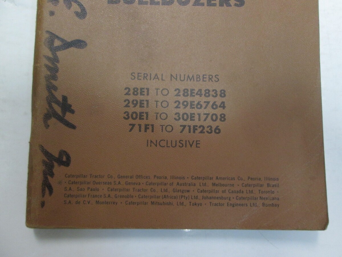 Caterpillar 8A 8S 8U 8C Bulldozer Teile Buch Manuell 1967 Minor Kleidung 28E4839