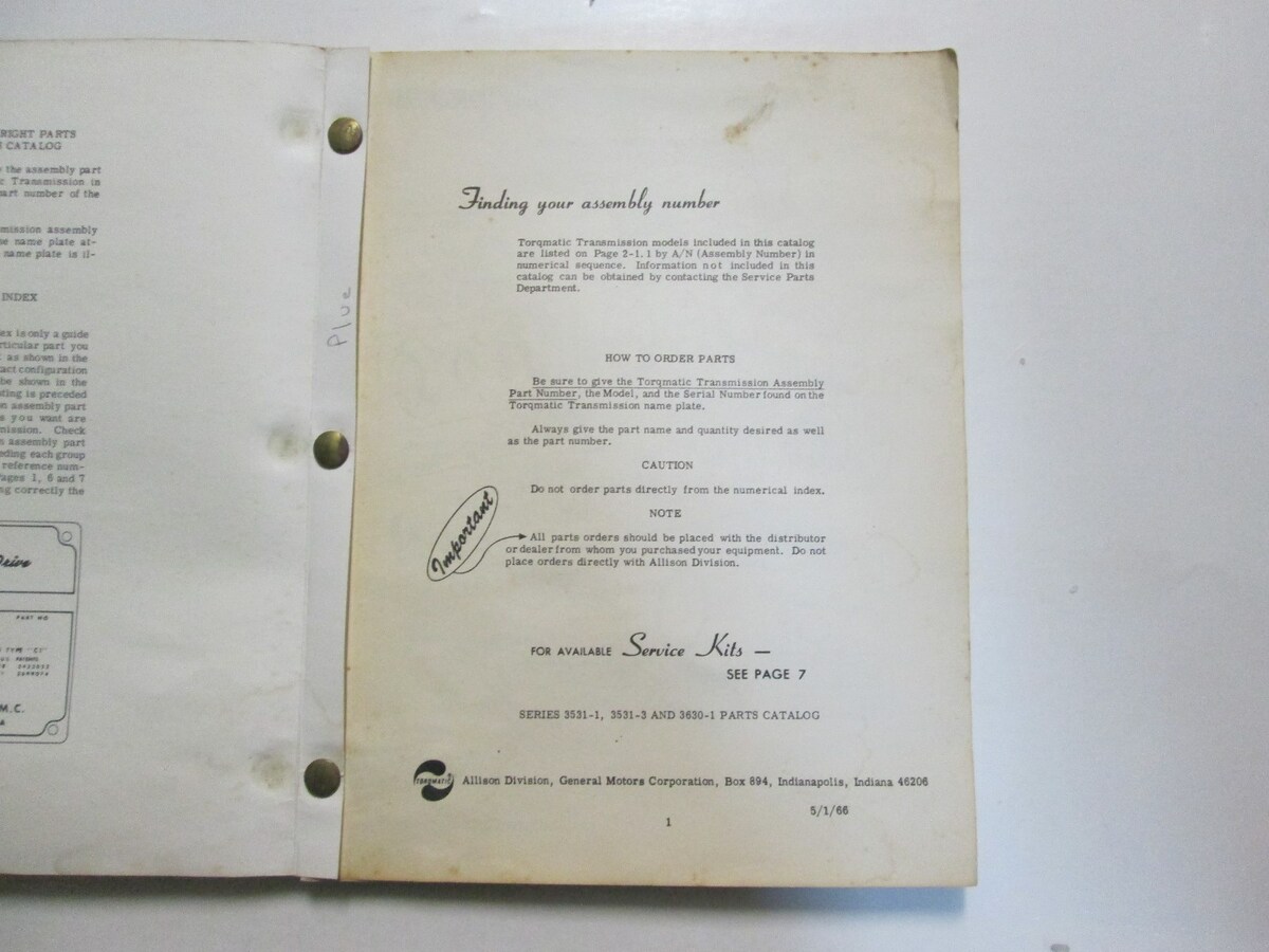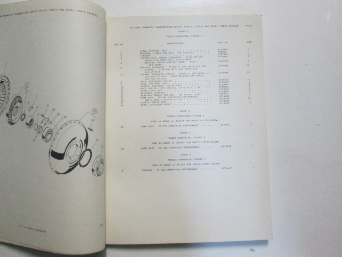 Allison Series 3531-1 3531-3 3630-1 Torqmatic Parts Catalog SA 1102F USED OEM