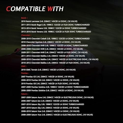 *This kit is specifically compatible with L4 2.2L and 2.4L engines in various Chevrolet (Equinox, HHR, Impala, Malibu, Cobalt), Buick (Regal, LaCrosse, Verano), GMC (Terrain), and Pontiac (G5) models from 2009-2017.