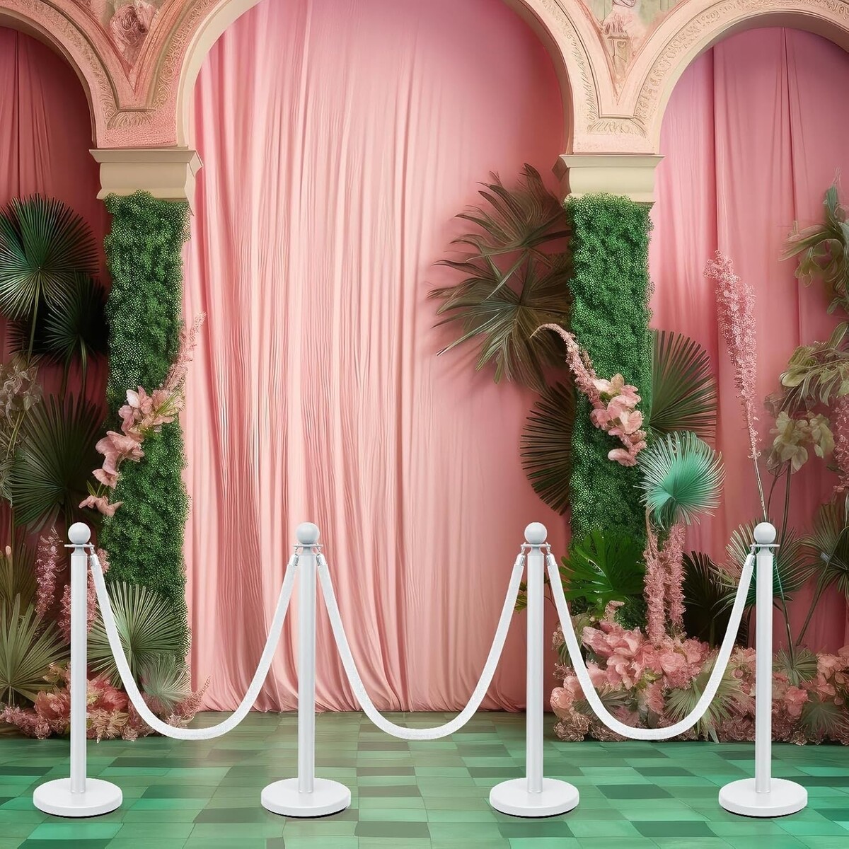 4pc Stainless Steel Stanchion Post Queue Red Carpet Ropes Poles 5' White Velvet