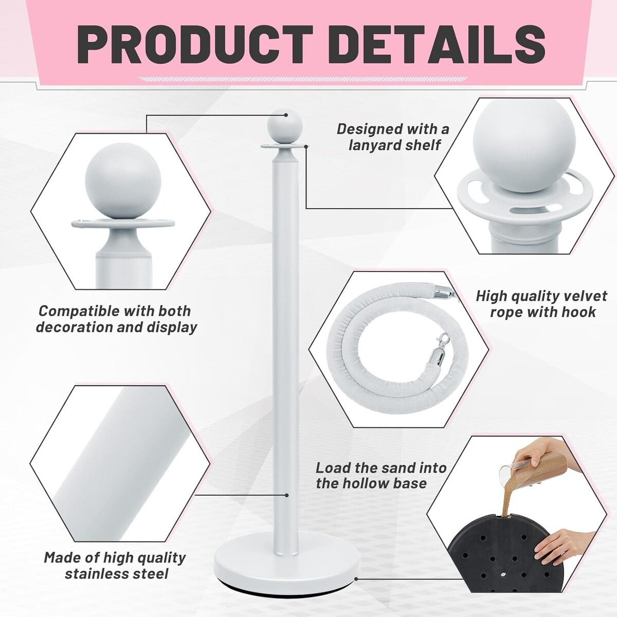 NOTE: Due to the material difference between the posts and the rope, there could be some shade/color variation with the white color between the two parts.