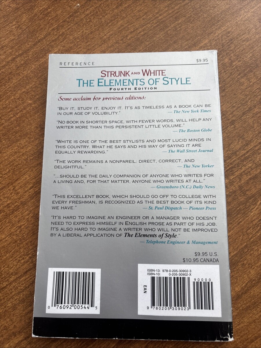 "The Elements of Style" by W. Strunk E.B. White is a comprehensive study guide focused on English grammar and writing. Published by Longman Publishing Group in 2000, this paperback book is an essential resource for high school, university, college, and elementary school students seeking to improve their writing skills. Written by renowned authors E.B. White Strunk, this advanced-level study guide provides valuable insights and guidance for enhancing language proficiency and understanding of proper writing techniques. Made in the United States, this book is a must-have for anyone looking to master the art of English writing.