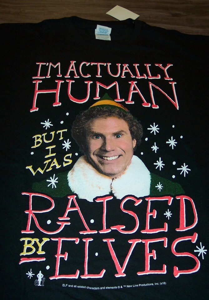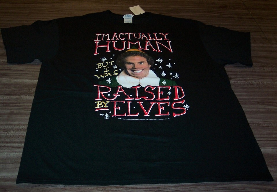 ELF WILL FARREL HUMAN RAISED BY ELVES T-Shirt MENS XL Christmas NEW w/ TAG