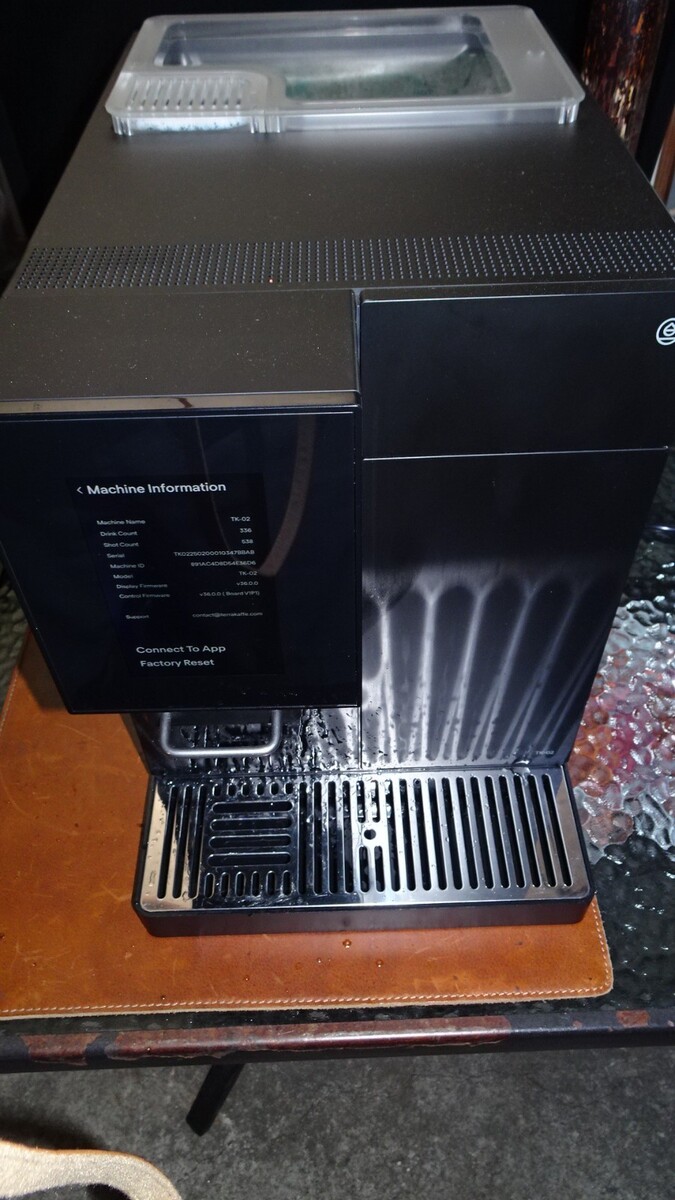 This Terra Kaffe TK-02 has been fully tested and is working excellent. All functions operate correctly, including espresso, americano, cappuccino, latte, flat white, and drip. The touchscreen responds well, brews consistently, and the internal cleaning cycles operate normally.