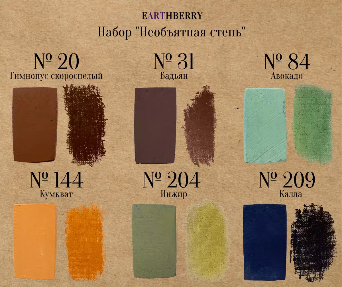Bring the colors of open landscapes to your artwork with the EARTHBERRY “Endless Steppe” soft pastel set — a handcrafted collection designed for artists who value depth, texture, and natural tones.