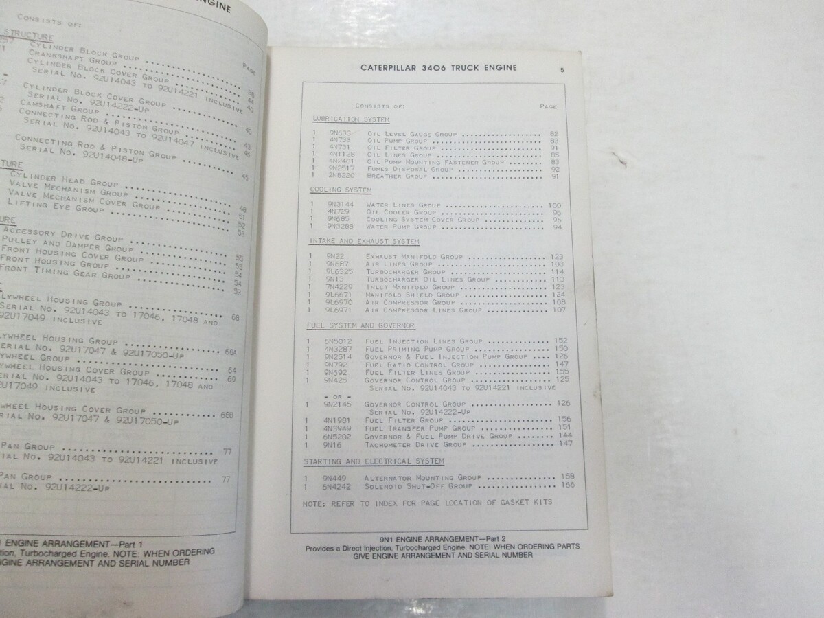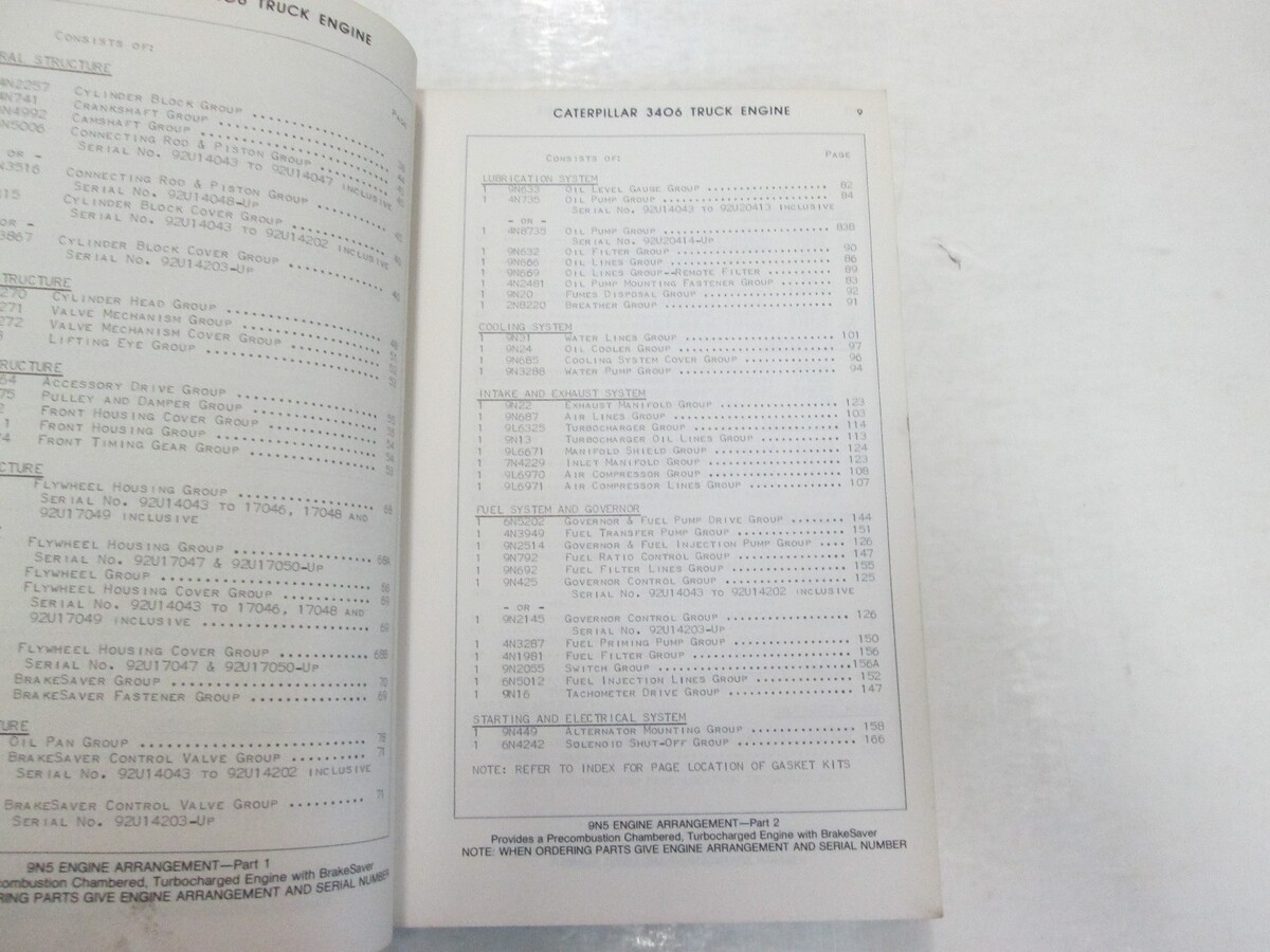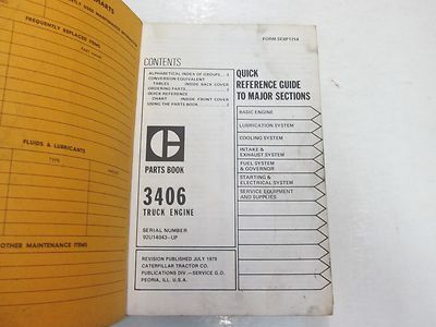 NUMERI DI SERIALE DEL MOTORE DEL CAMION CATERPILLAR 3406 92U14043-UP LIBRO DELLE PARTI MANUALE DANNI MACCHIATI