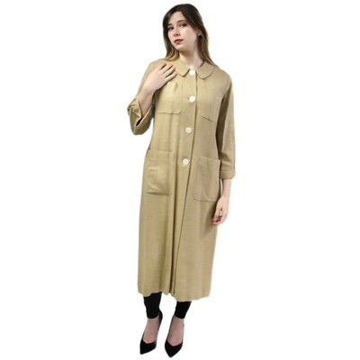 Vintage Jerry Gilden Spectator 100% Linen Duster Trenh Coat Dress for Spring with Button Front and Belt Back from the 1950s. It is a straight shift style and should fit small to large. I love the big pockets on the front. It is in excellent condition. The small close-up shows the color the best.