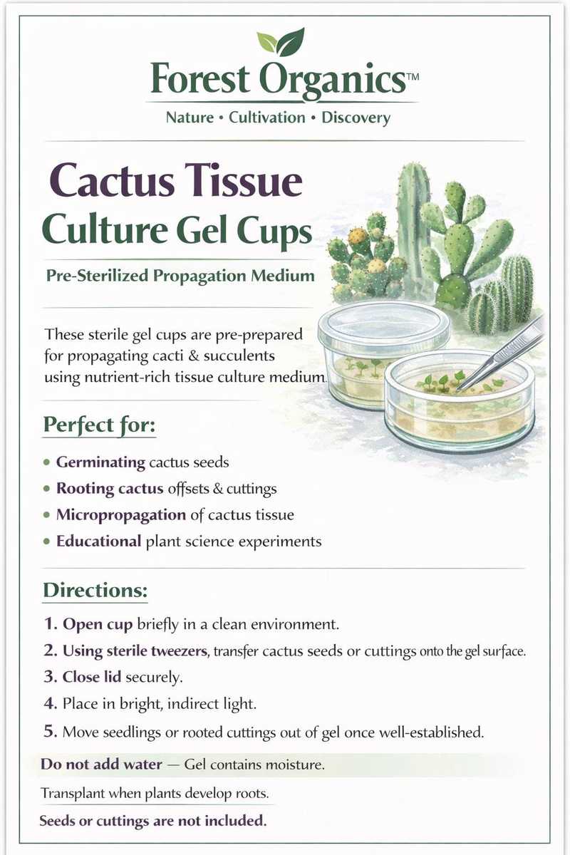 Bring cactus propagation into the world of in vitro culture with Cactus Tissue Seed Culture Gel Cups.