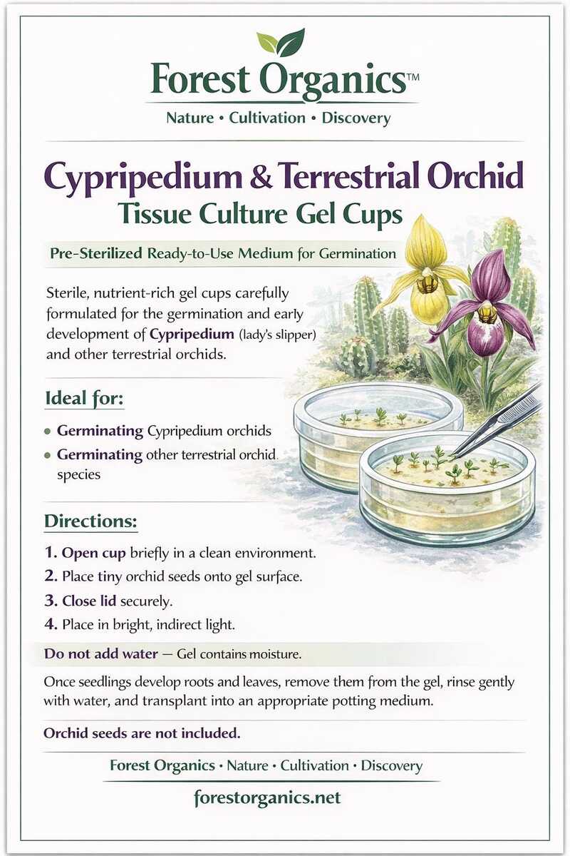 Unlock the beauty of terrestrial orchids with Forest Organics Cypripedium Terrestrial Orchid Tissue Culture Gel Cups.