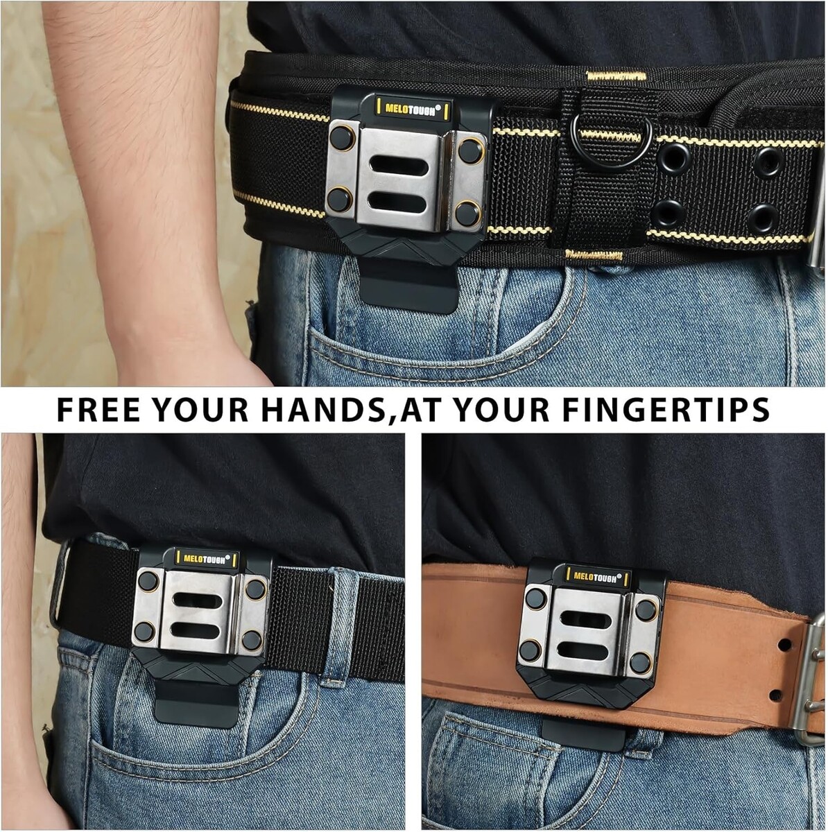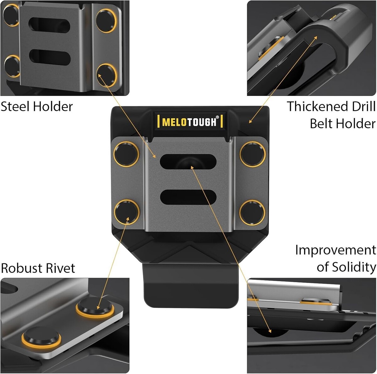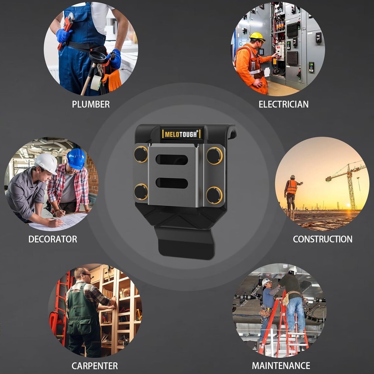 Stable Long-Lasting: Constructed with a rivet-reinforced ABS and iron structure that is built to last. Enhanced with small dots and a bar-shaped resistance design to increase friction, ensuring it remains securely attached to your tool belt during use.