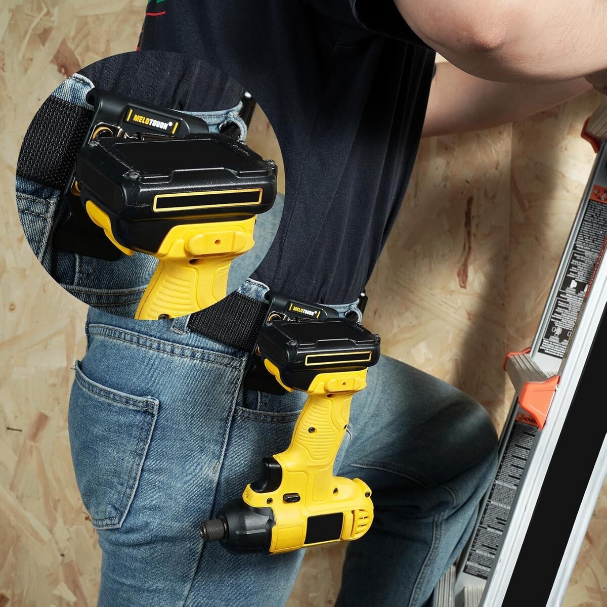 Accessible Efficient: Keep your cordless drill, impact driver, and tape measure readily available. This tool belt holder allows you to work efficiently at heights?on ladders, roofs, or scaffolding?by freeing your hands and keeping tools within easy .