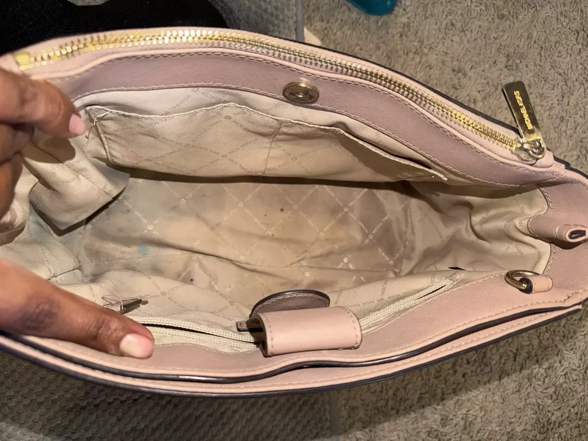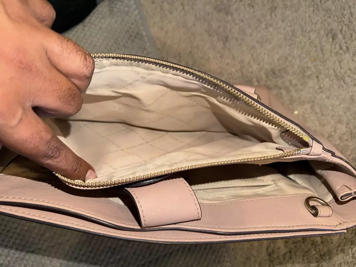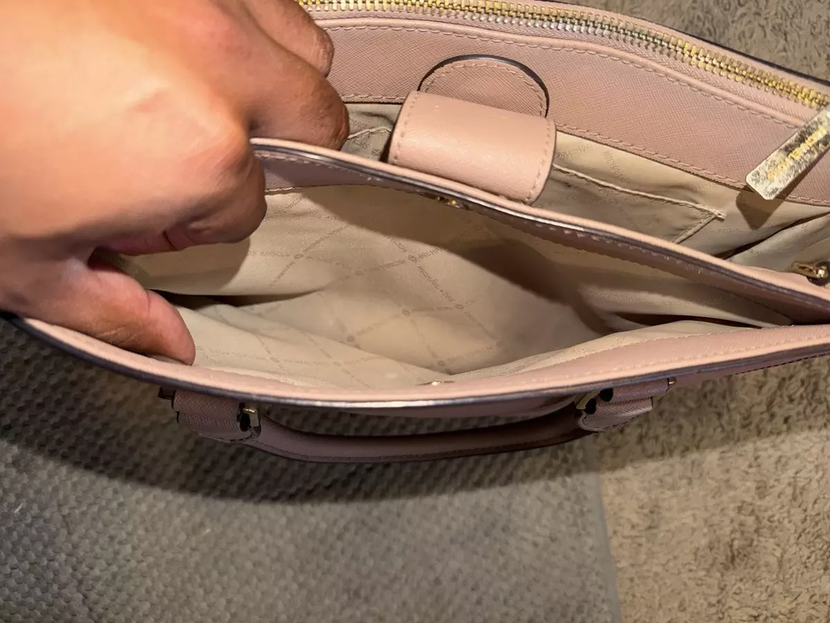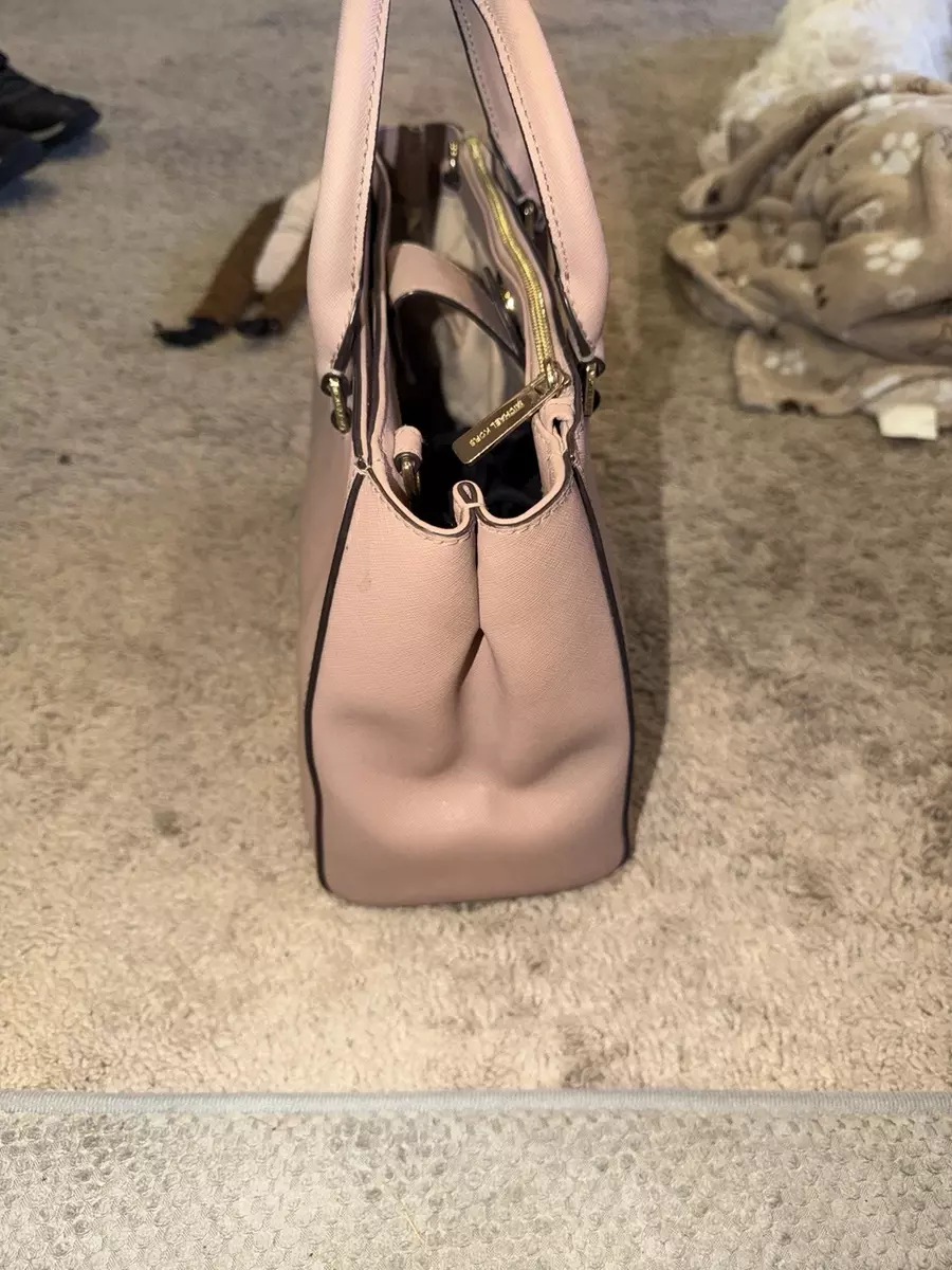 Michael Kors Light Pink Satchel Top Handle Bag with Zipper Logo Charm