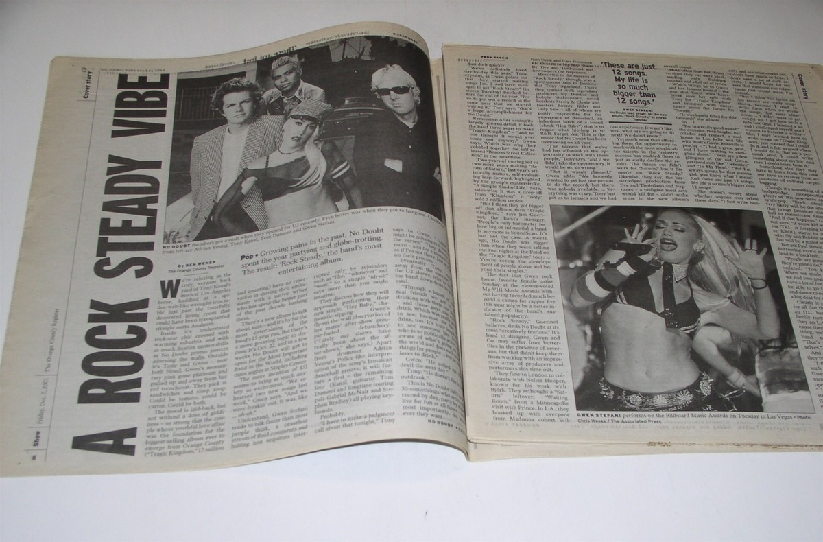 No Doubt Gwen Stefani Show Newspaper Supplement Vintage 2001 Cover Rock Steady*