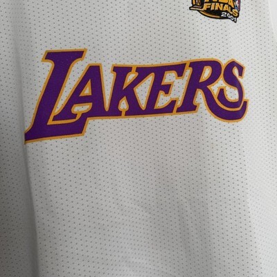 Vintage Los Angeles Lakers men's basketball jersey in tag size XL featuring Shaquille O'Neal 34 graphics and 2001 NBA Finals details by Majestic.