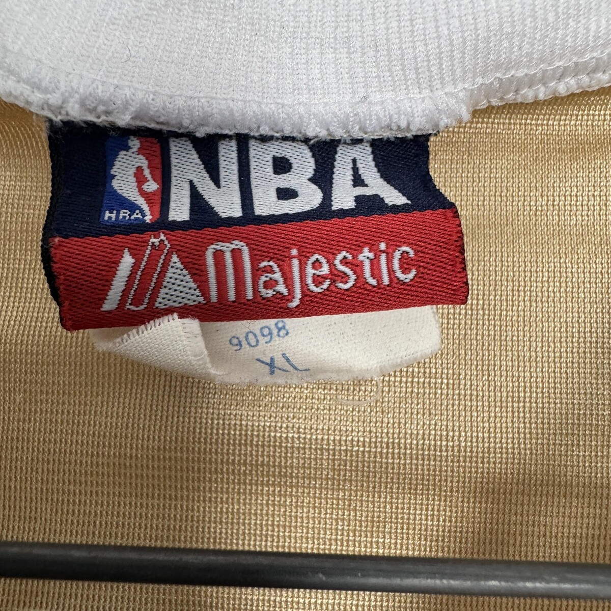 Interior neck label shows NBA Majestic branding with a separate size tab marked XL and style code 9098.