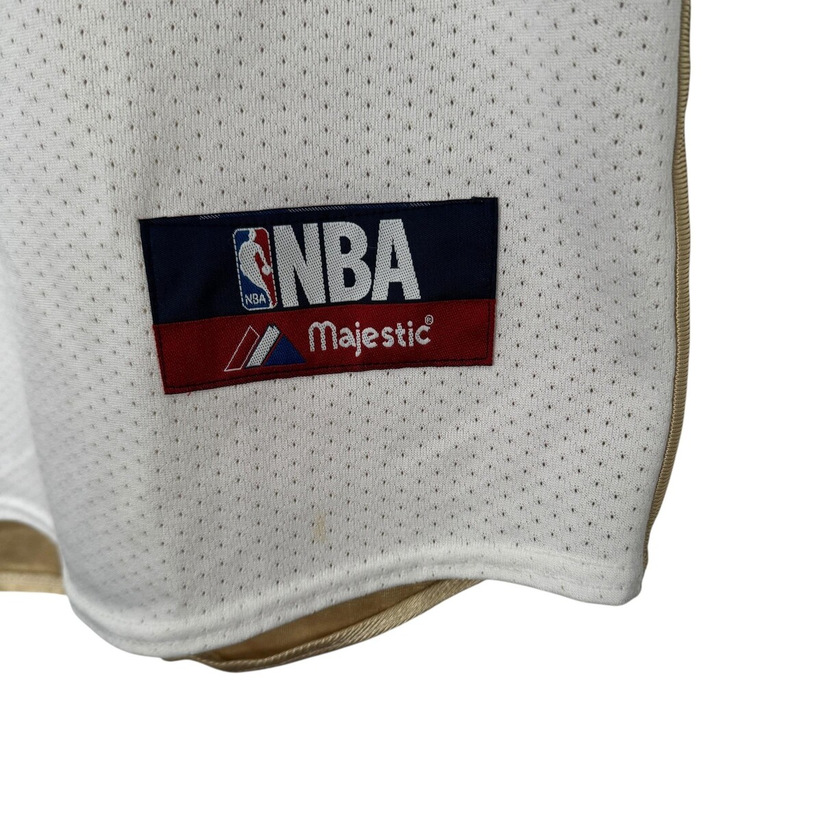 Lower front hem features a woven NBA Majestic jock tag on the left side.