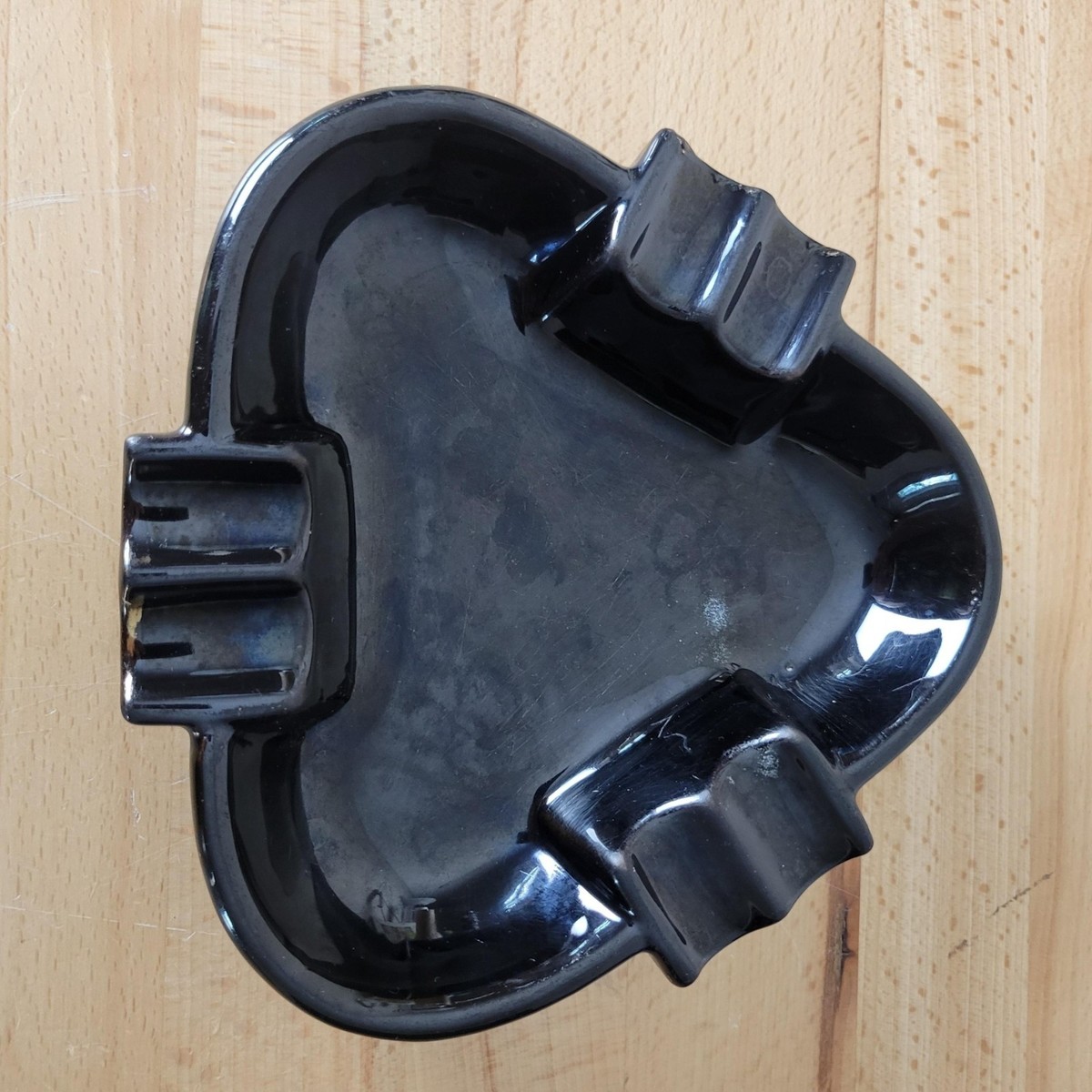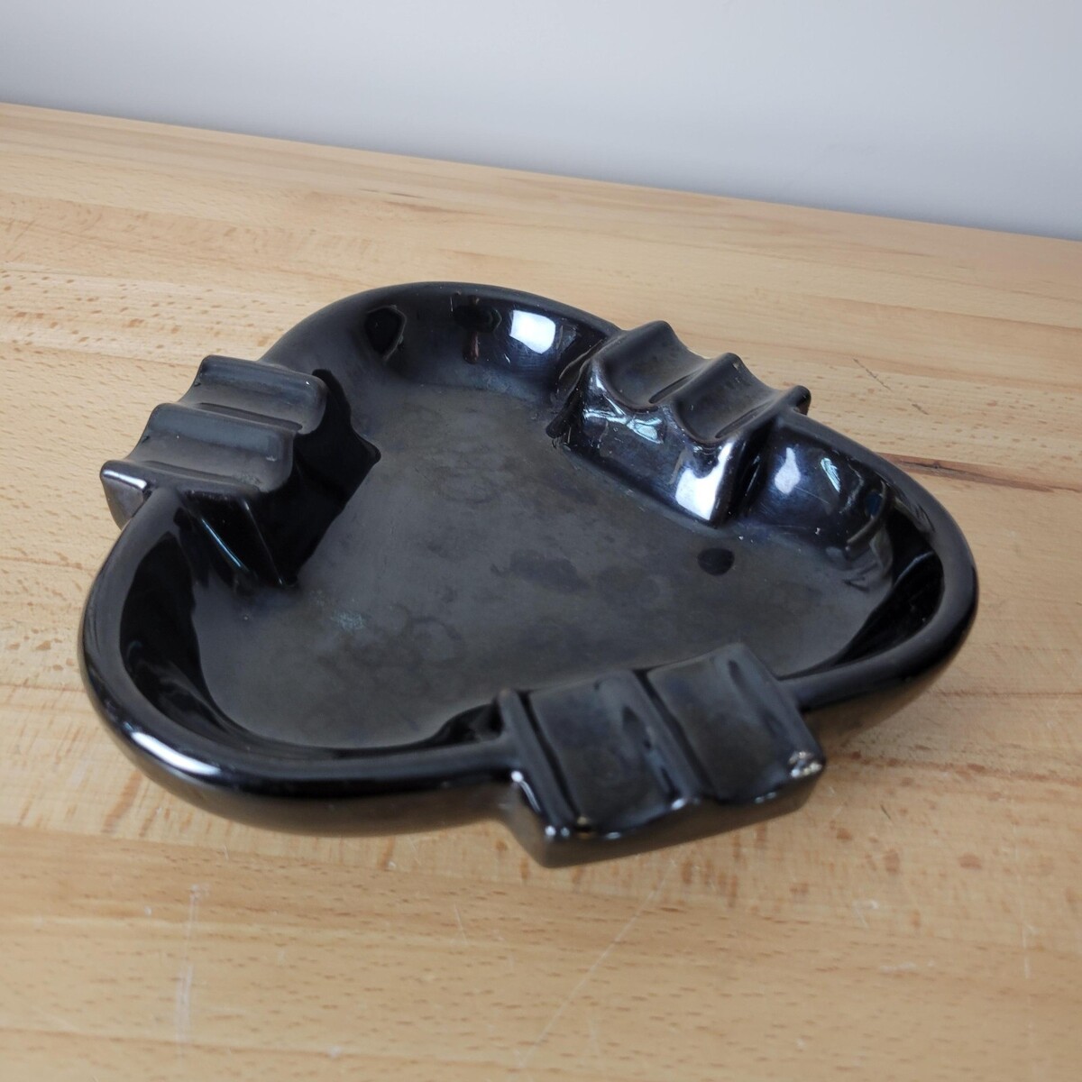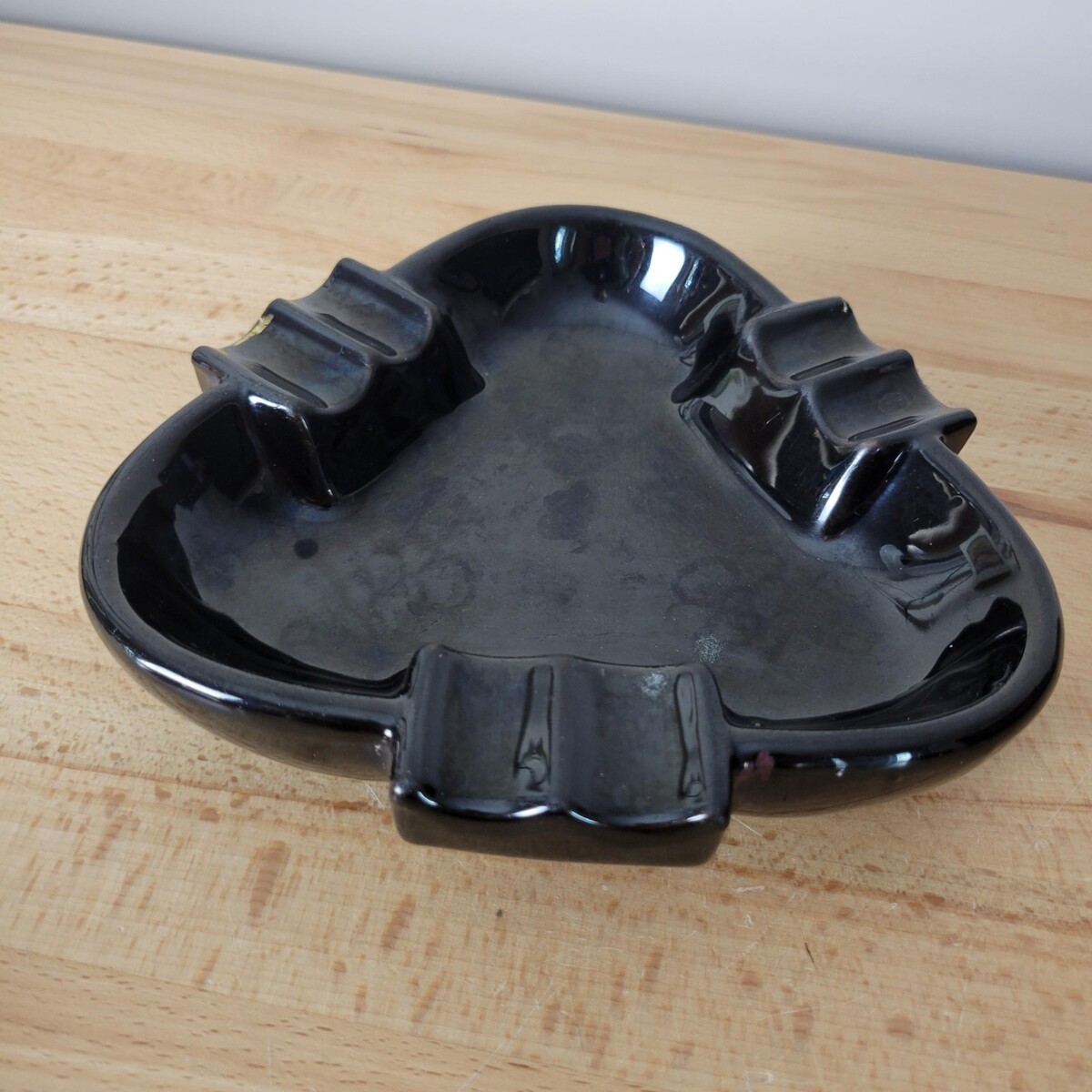 Vintage Ceramic Ashtray Cigars Triangle Black Mid Century Gloss Glazed NO Chips