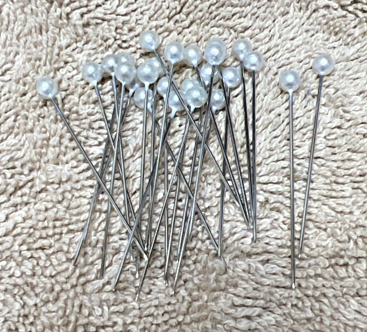 Lot of 25 Round Topped Pearl Corsage Head Pins 2 Inches long White In good shape they look never used however they are older...