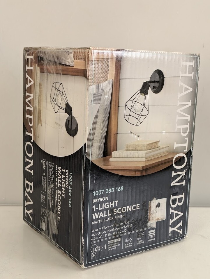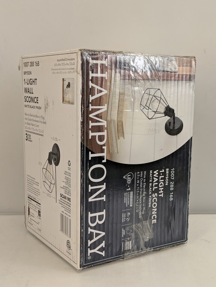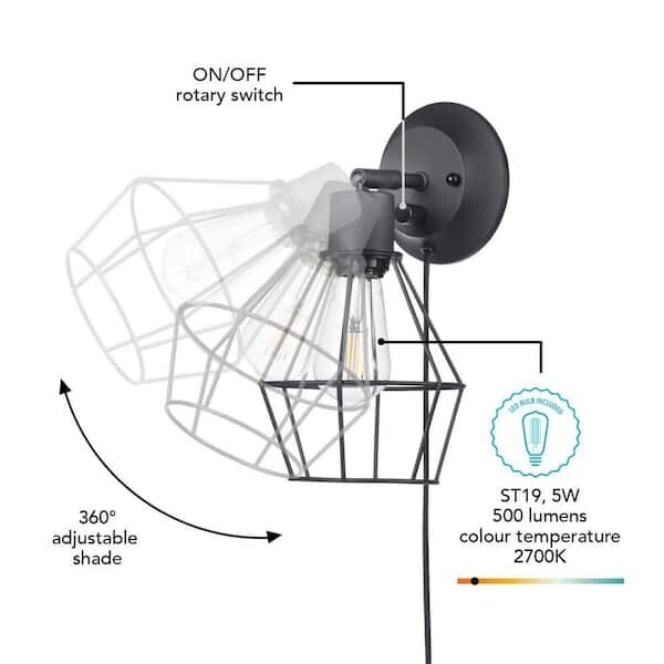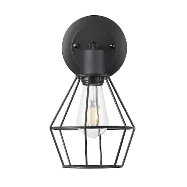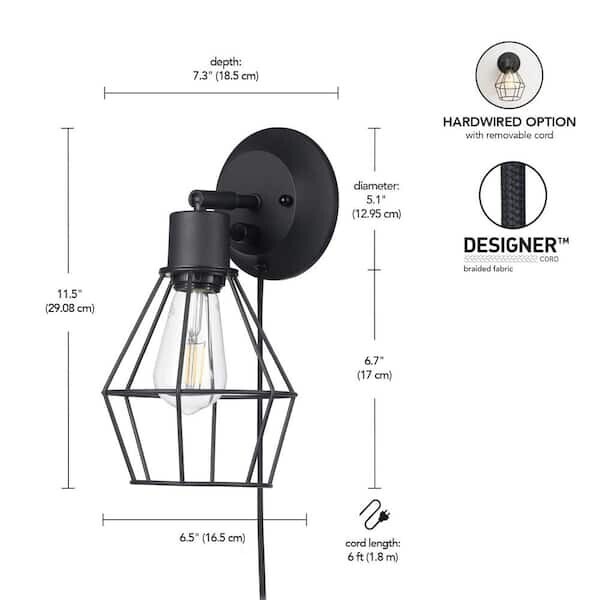 Bryson 1-Light LED Cage Wall Sconce Plug-in Hardwire Matte Black Bulb Included