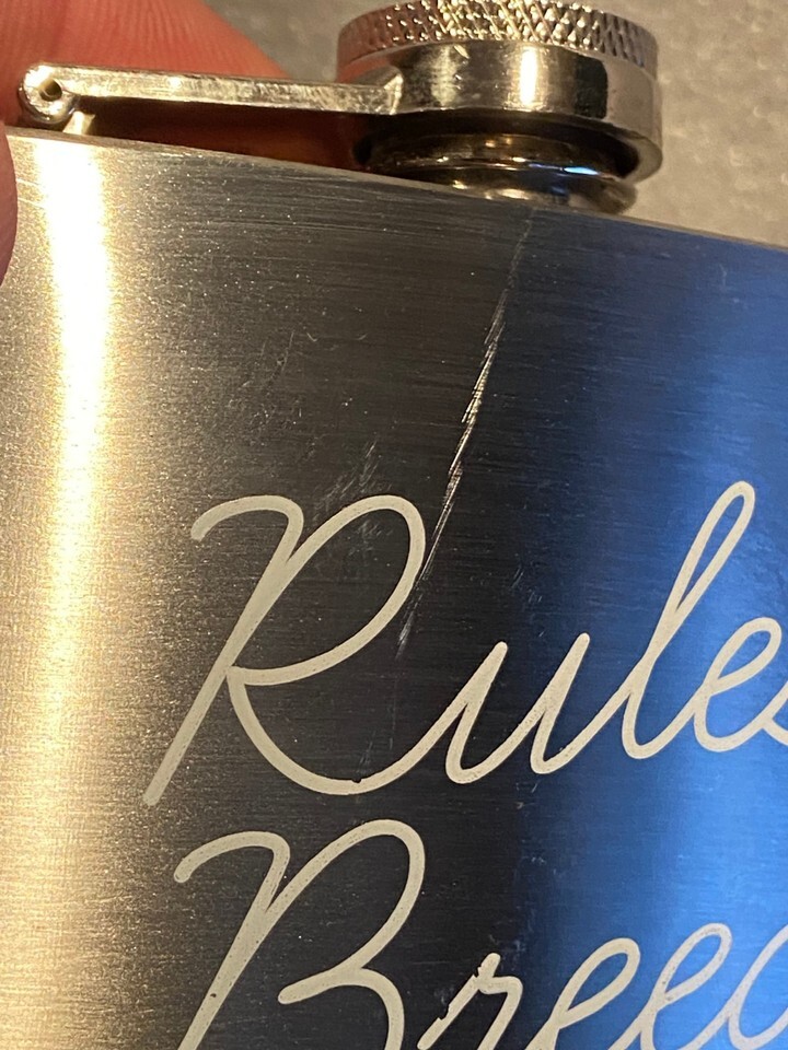 6oz Stainless Steel 4.25" Flask Says: RULES BREED REBELS *Pre-Owned/Nice* i2