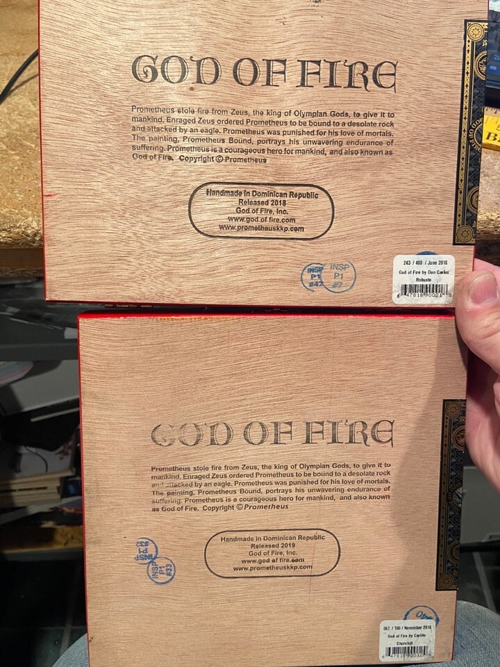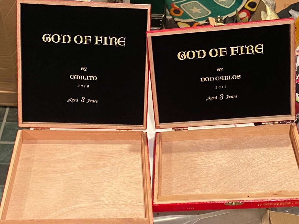 2 God Of Fire Red Empty Cigar Boxes (Churchill/Robusto) 2018-2019 Pre-Owned l1