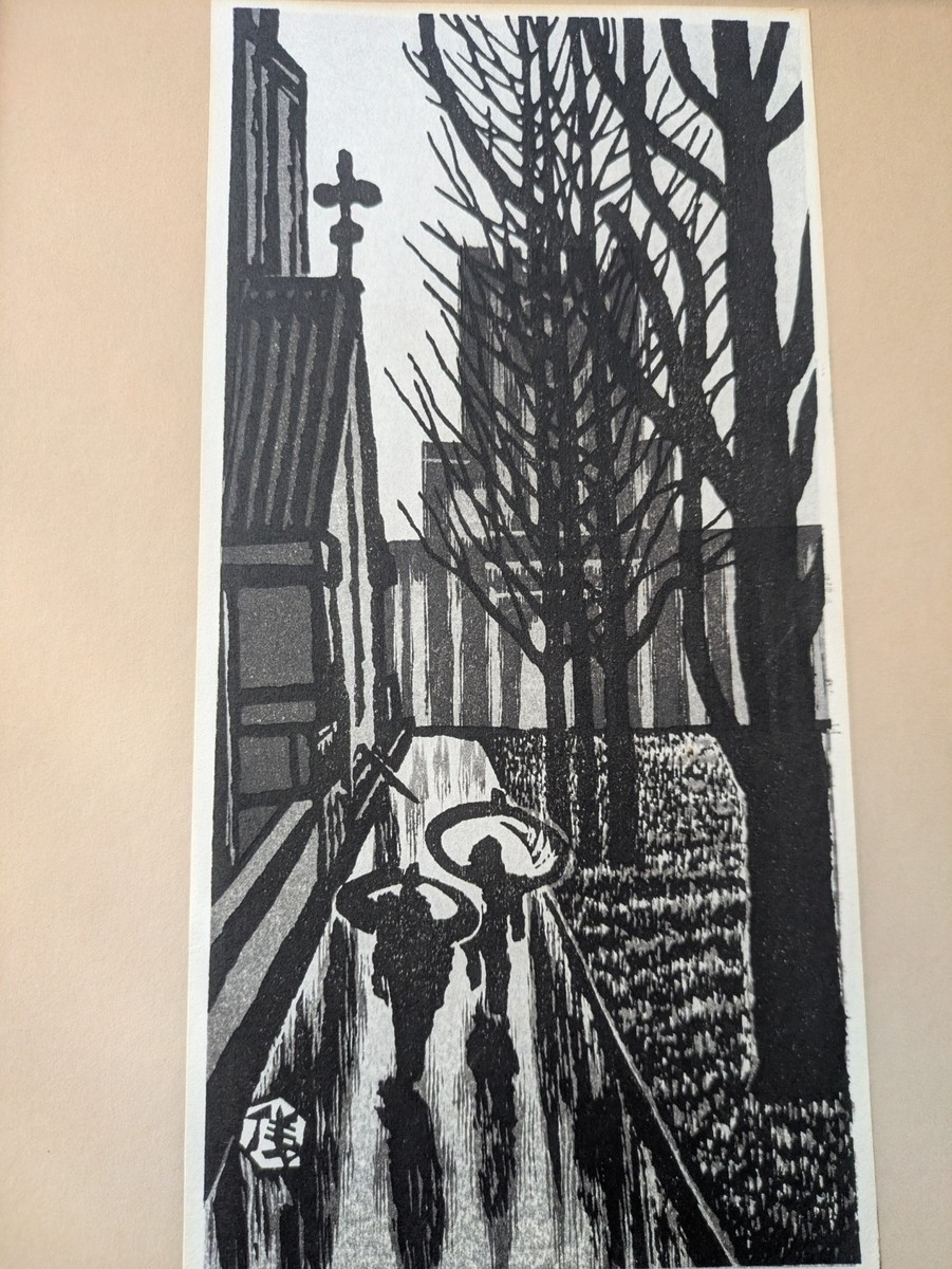 Gihachiro Okuyama Pluvieux Jour Noir Blanc Japonais Bloc de Bois Imprimé People