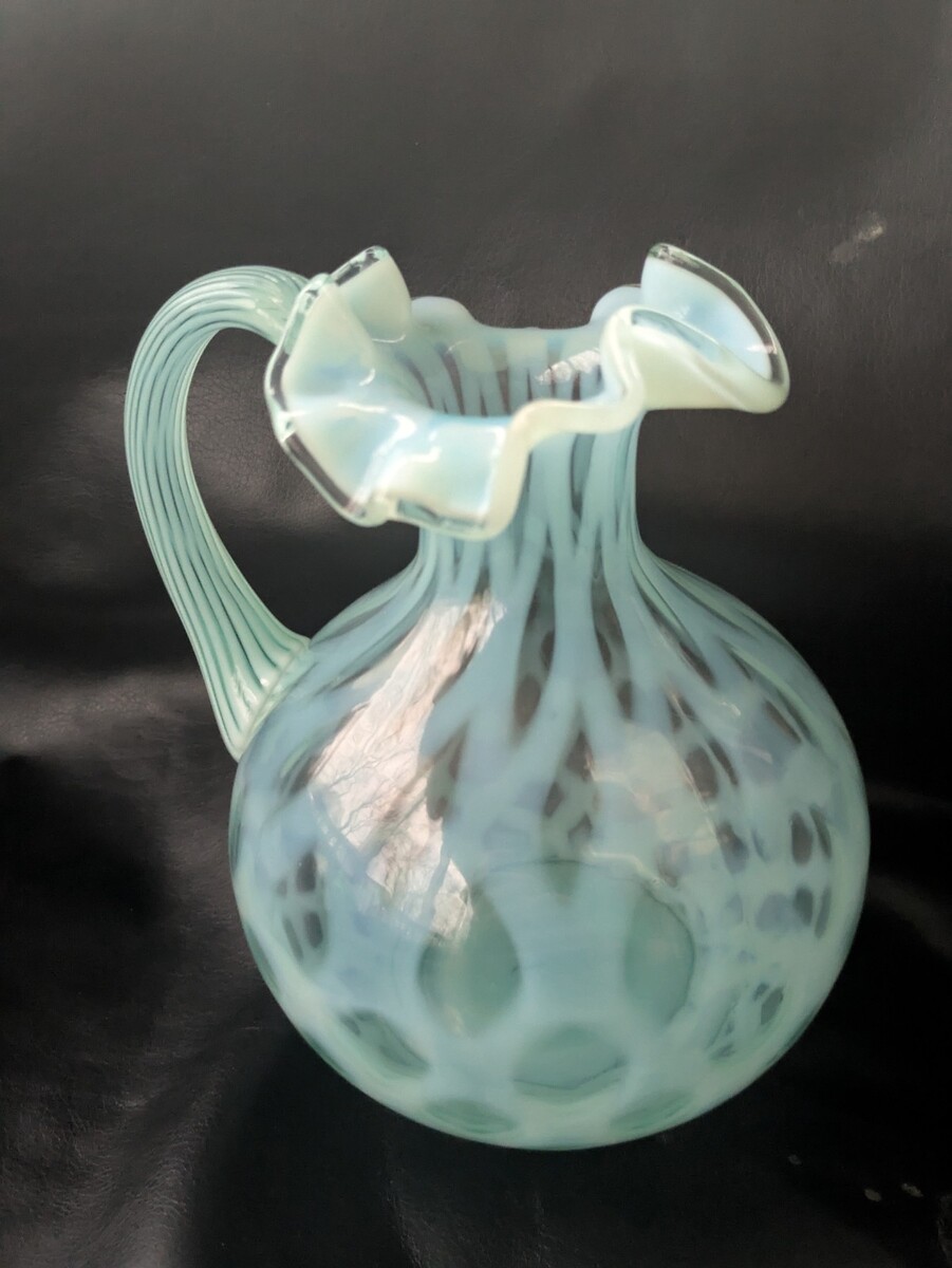 Fenton Art Verre Bleu Topaze Opalescent Pièce Pois Cruche 6.5 Inch Volants Lèvre