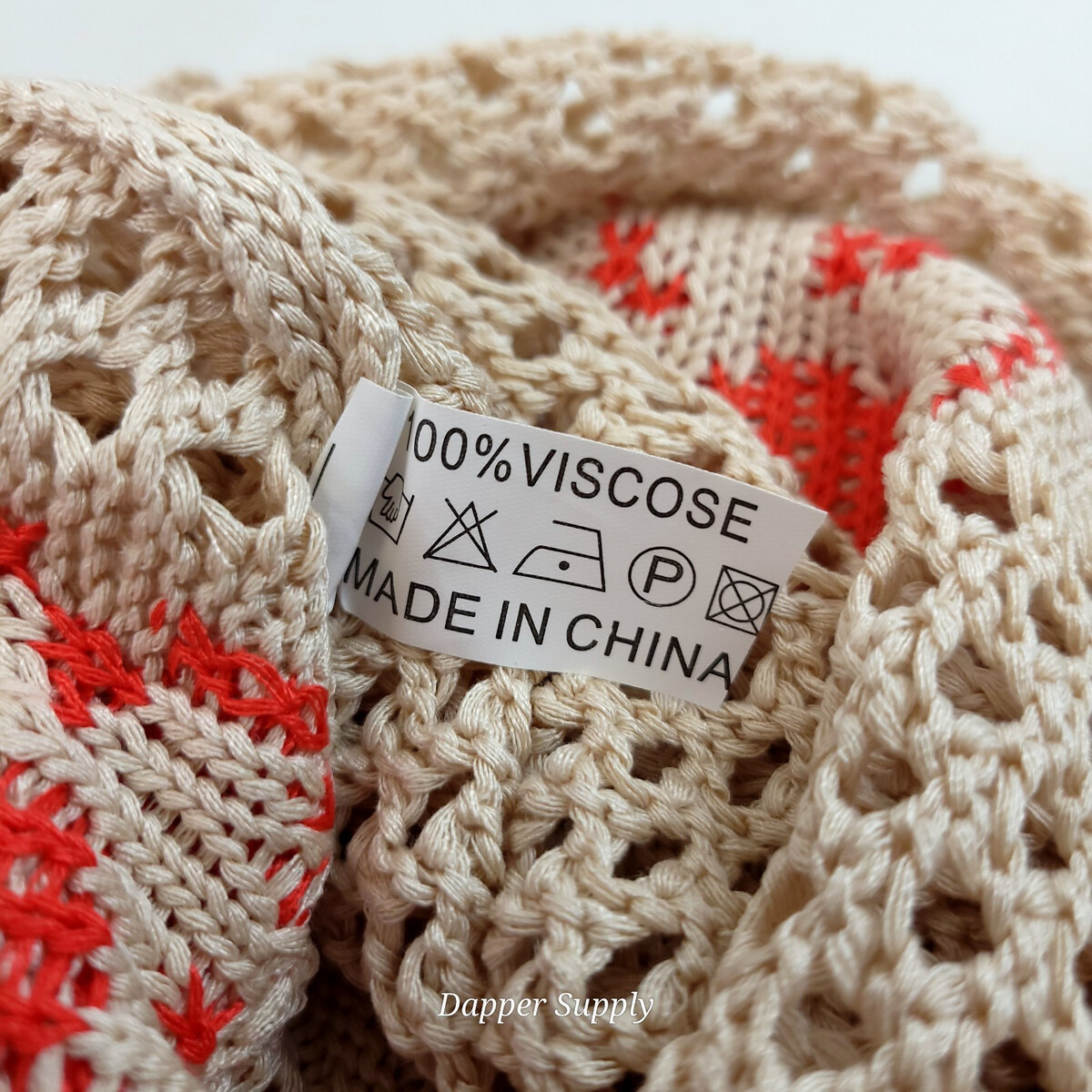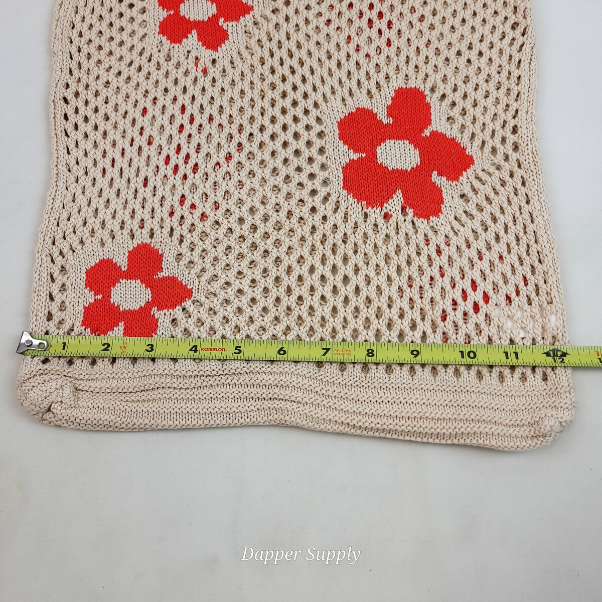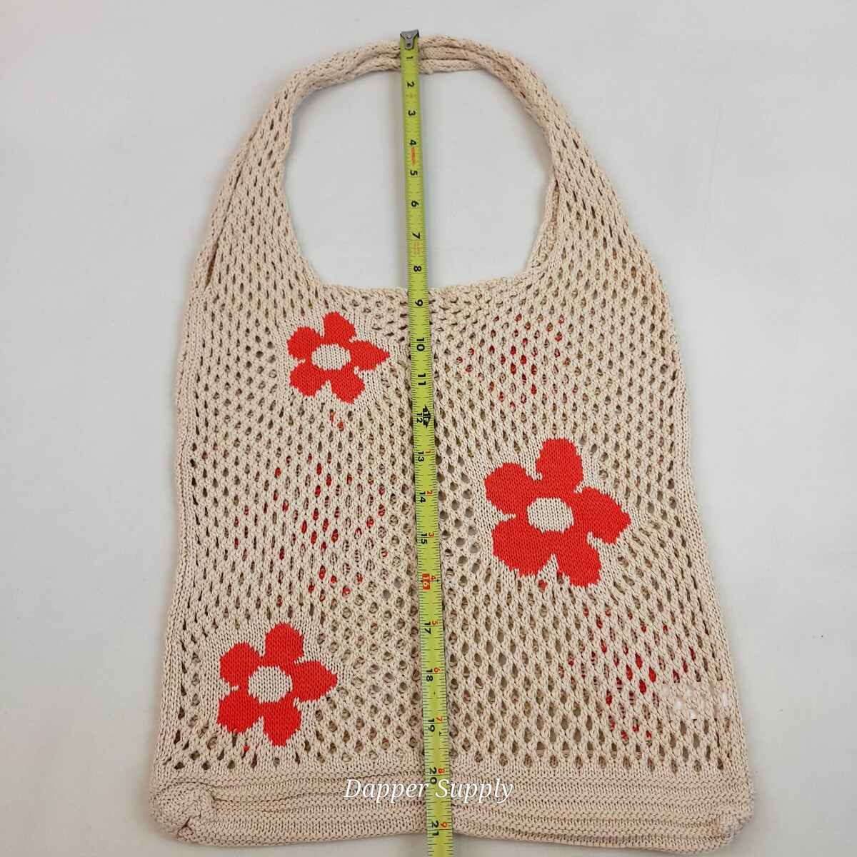 Crochet Floral Tote Shoulder Bag Natural Mesh 21x12" Red Flowers