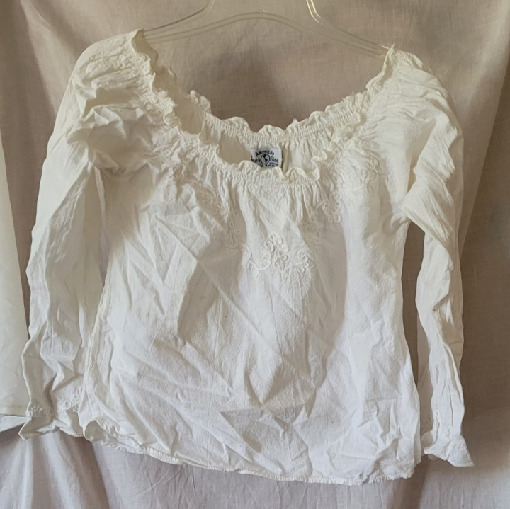 Women's American South Side Shirt Size? Solid White Off Shoulder Long Sleeve