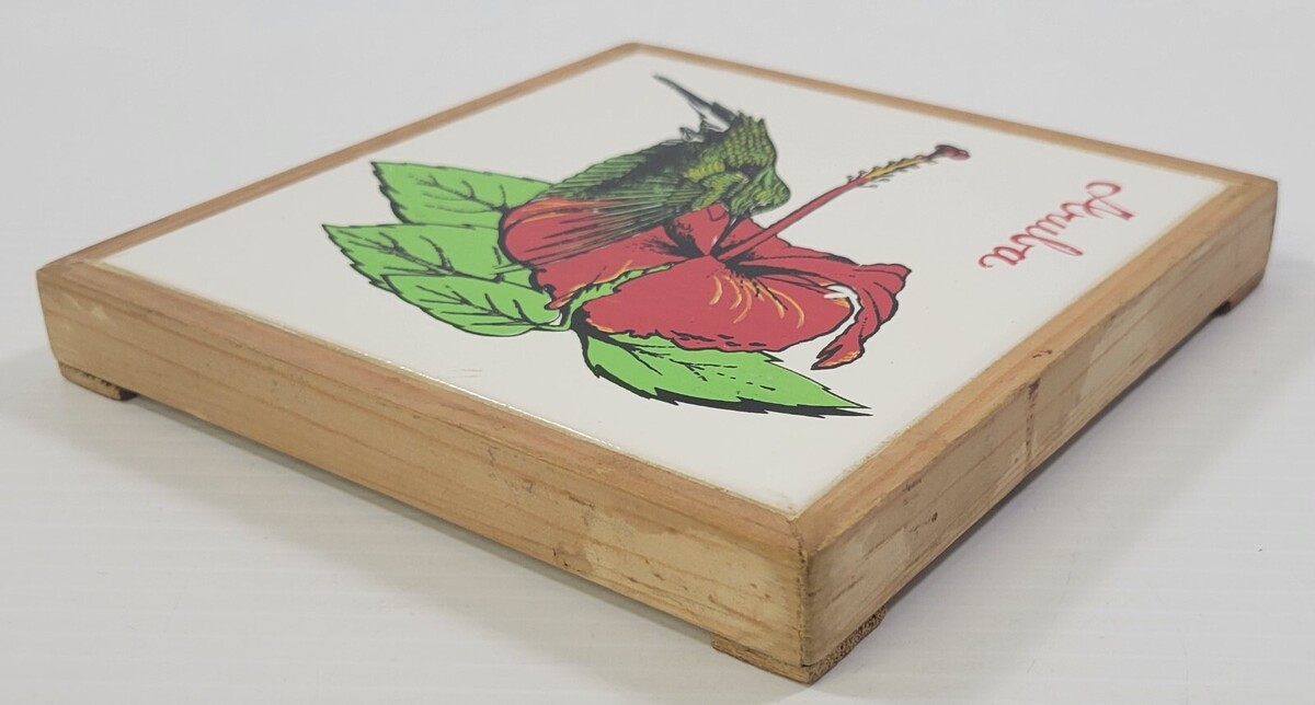 *L) Aruba Hummingbird Ceramic Tile Wooden Trivet Travel Souvenir 6" x 6"