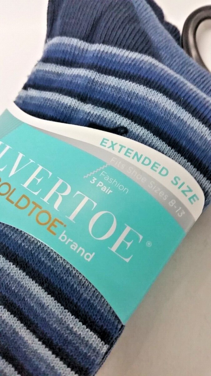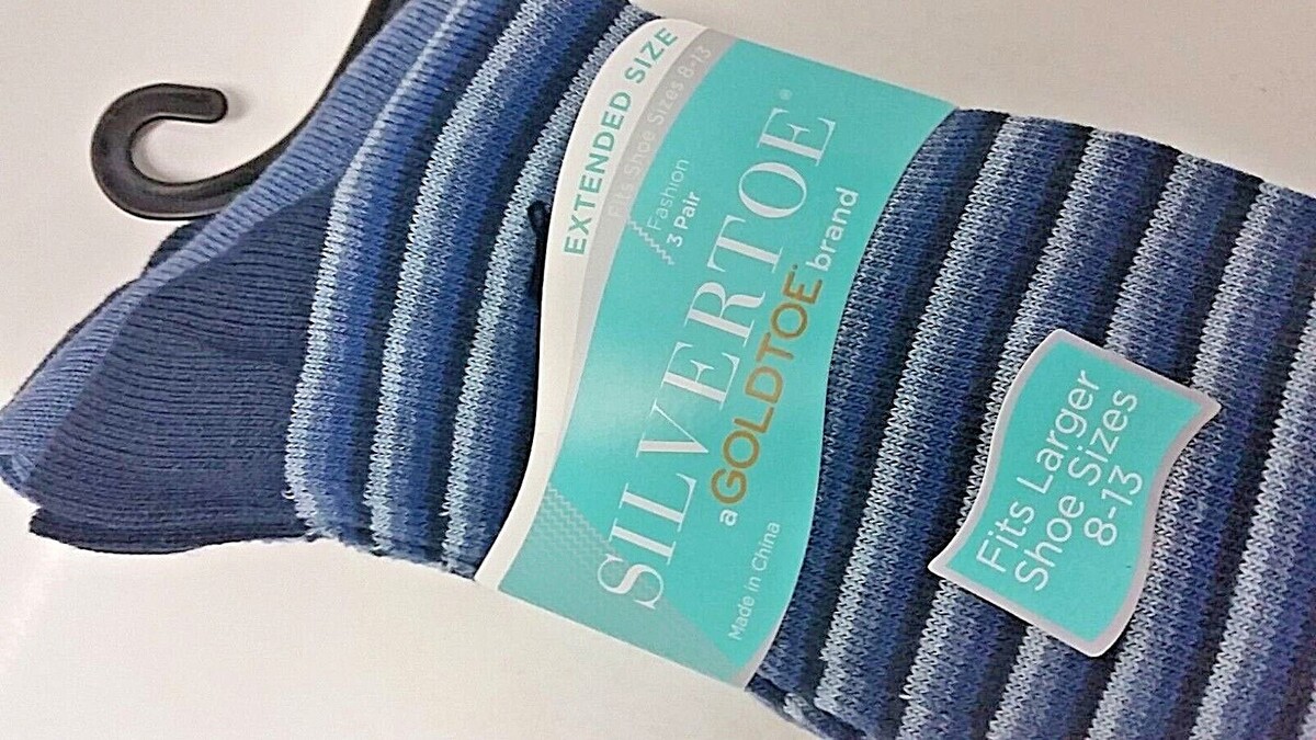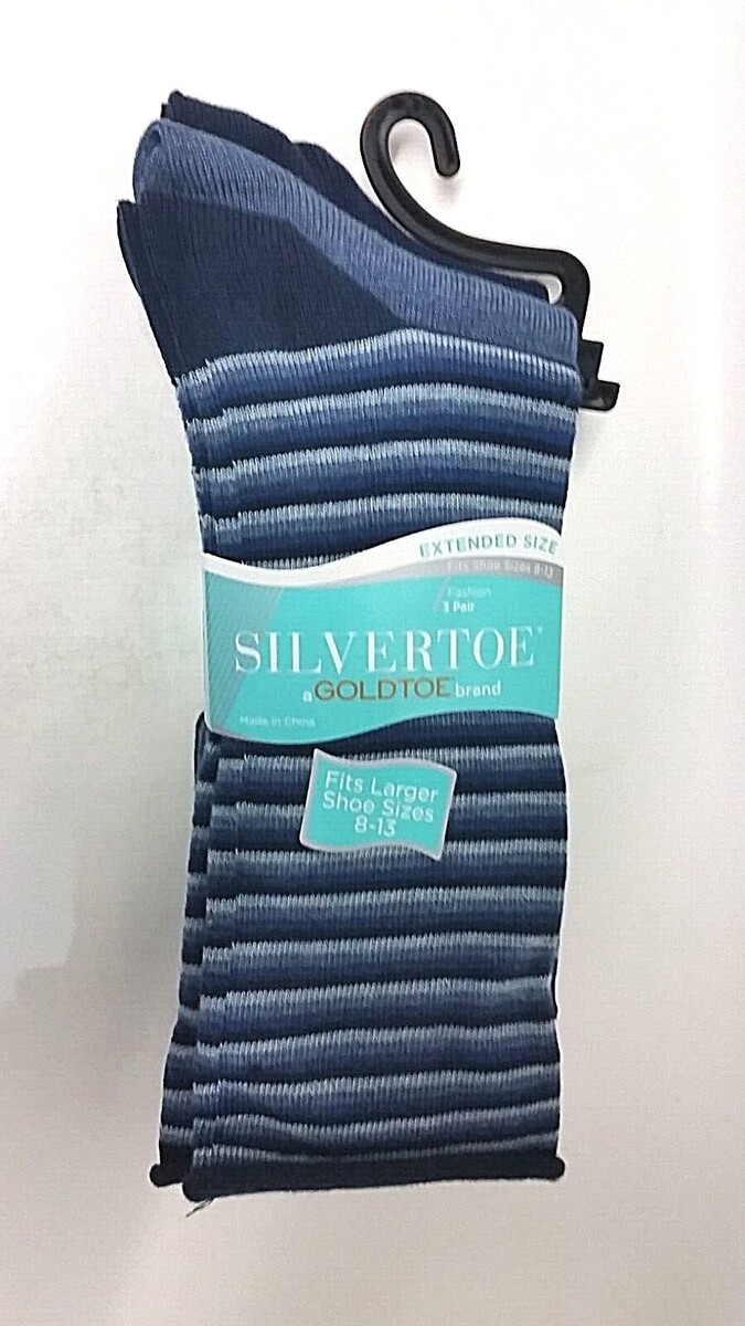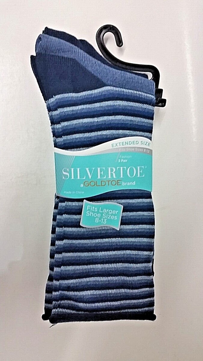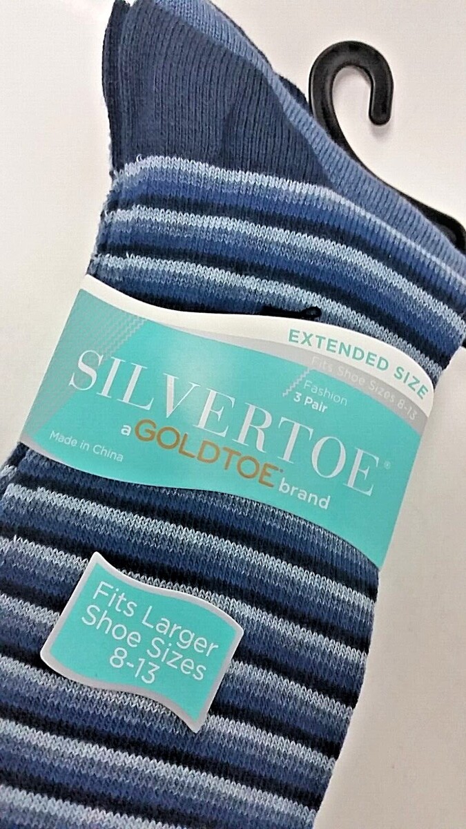 3 PAIR SILVER TOE by GoldToeBrand Men's Fashion Extended Shoe Size 8-13 Socks