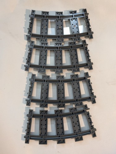 In vendita c'e un lotto usato di 4 pezzi sostitutivi della citta del binario del treno stradale in plastica curva Lego 53400 grigio.