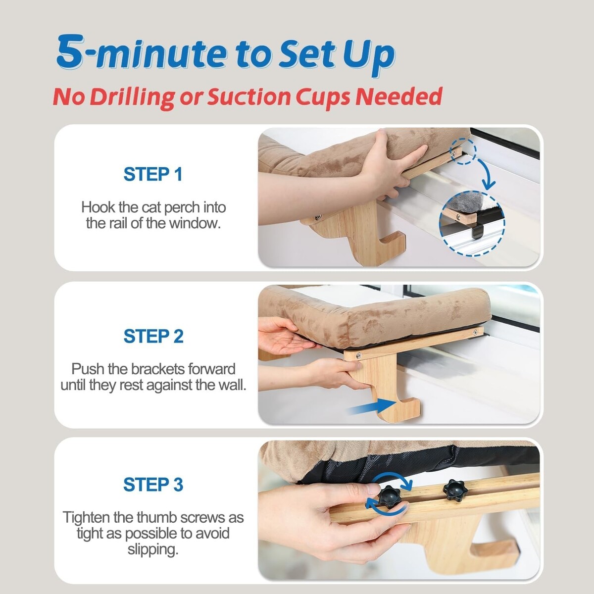 Sturdy Build Quality Materials: Crafted with hardwood and a robust metal frame, giving you peace of mind that your cat can safely enjoy their window view without wobbling or tilting.