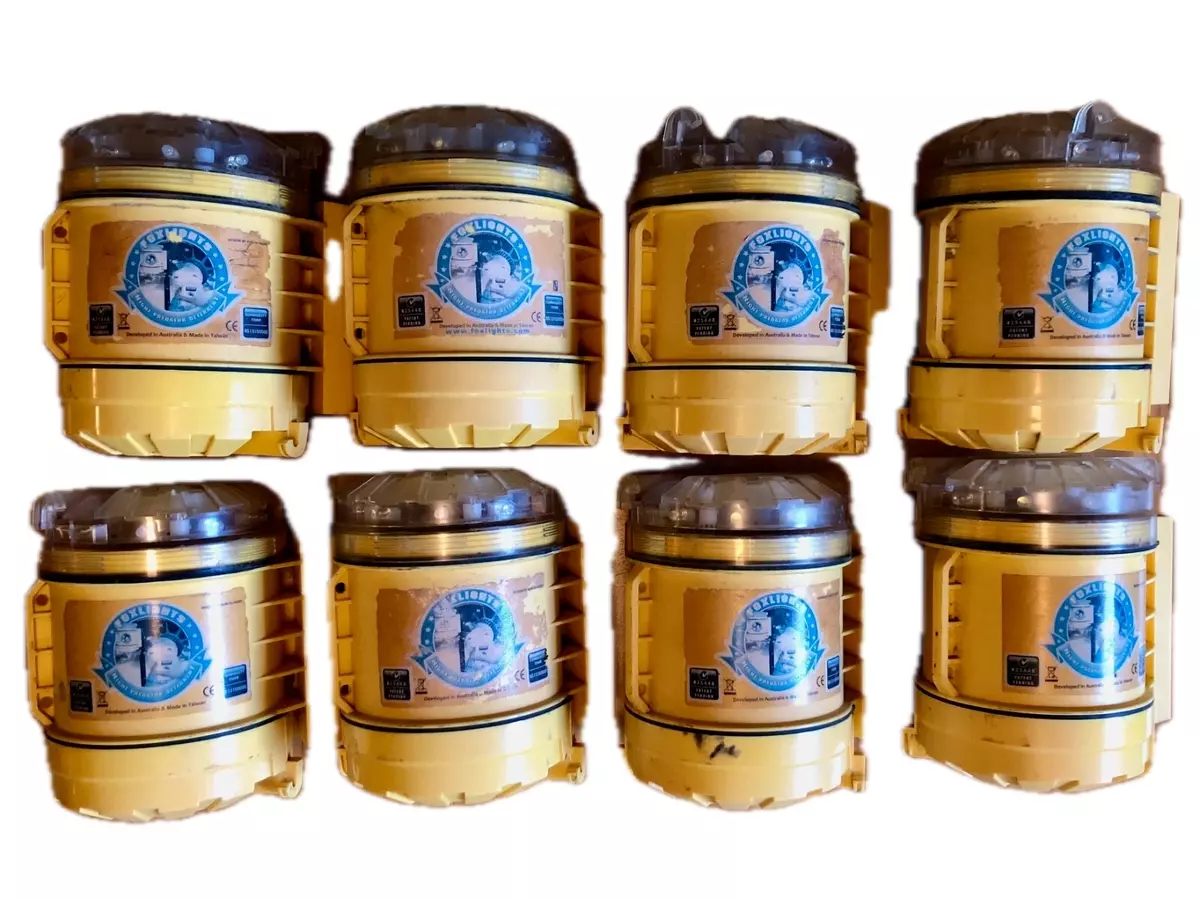 Lot of 8 used 8 FoxLights night predator deterrent control flashing LED weatherproof, T-post mount. All units have been tested and function properly.