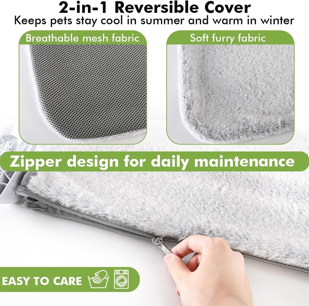 2-in-1 Reversible Cover: Features plush faux rabbit fur for winter and breathable mesh for summer, easily switchable and washable.