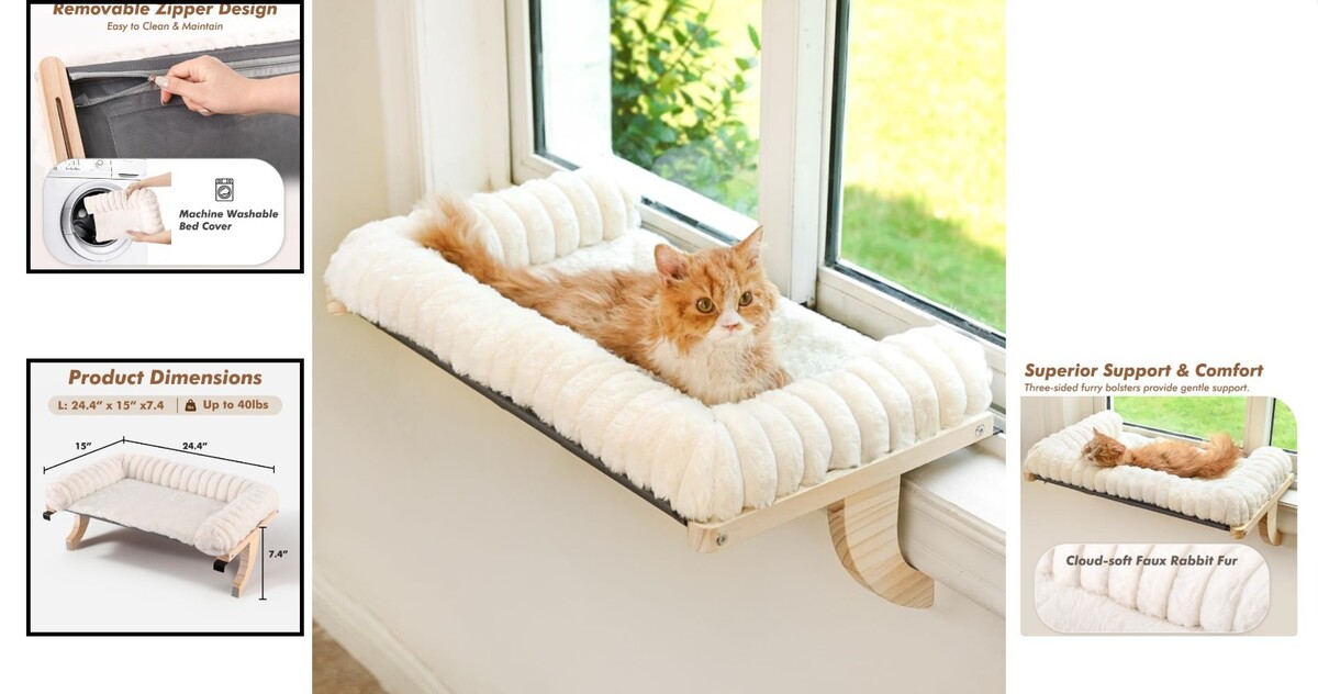 Elegant Cat Window Seat with Wood Metal Frame - Supports Up to 40 lbs
