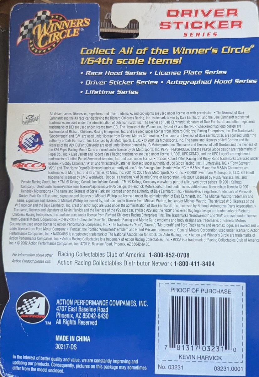2001 NASCAR Cup Series 29 KEVIN HARVICK Winner's Circle Driver Sticker Series