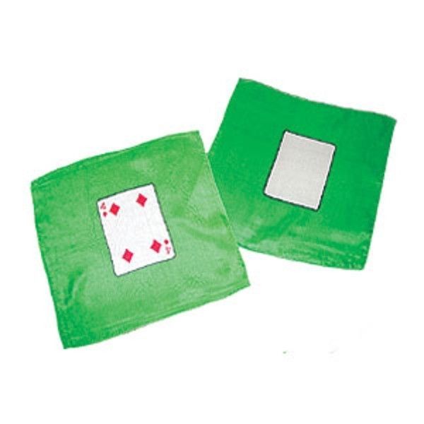 Wow! This is a wonderful accessory for your thumb tip! Have a spectator pick a card from a deck of playing cards. Also show your audience a 7.5 X 7.5 inch (approx. 10 inches diagonally) silk. This silk has a white blank card pictured on a green background. Place the silk in your hand, say the magic word... instantly the blank silk card has transformed into a pictured silk card! Yes, you guessed it, the silk is a picture of the card the spectator previously selected! Perform this effect stand-up or platform, close-up or on the street. Even surrounded. Includes two beautifully made silks, one blank - the other picturing the face of a playing card (both on a green background), and instructions. You supply the thumb tip gimmick and deck of playing cards. Thumb tips may be purchased in our store also. Note: Forcing a card is necessary for this effect. The instructions include several methods. A Forcing a Card DVD is also available for purchase from our store if needed.