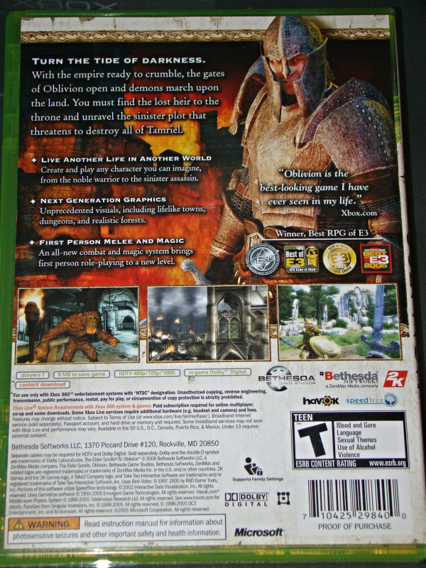 Item: XBOX 360 - The Elder Scrolls IV OBLIVION (Complete with Instructions)