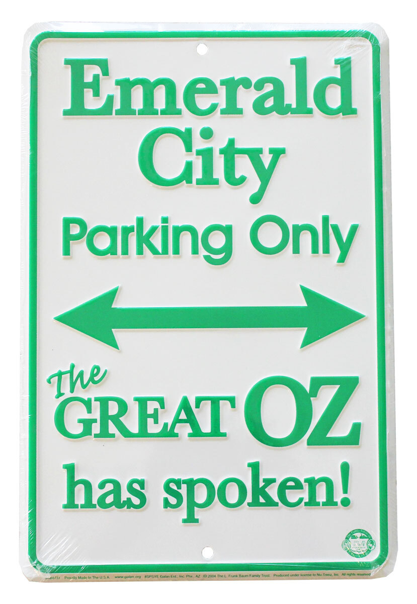 Emerald City Parking Only-The Great Oz Has Spoken! These parking signs are a great item to hang on the wall of your room, office or garage! Our metal parking signs are 8"x12".