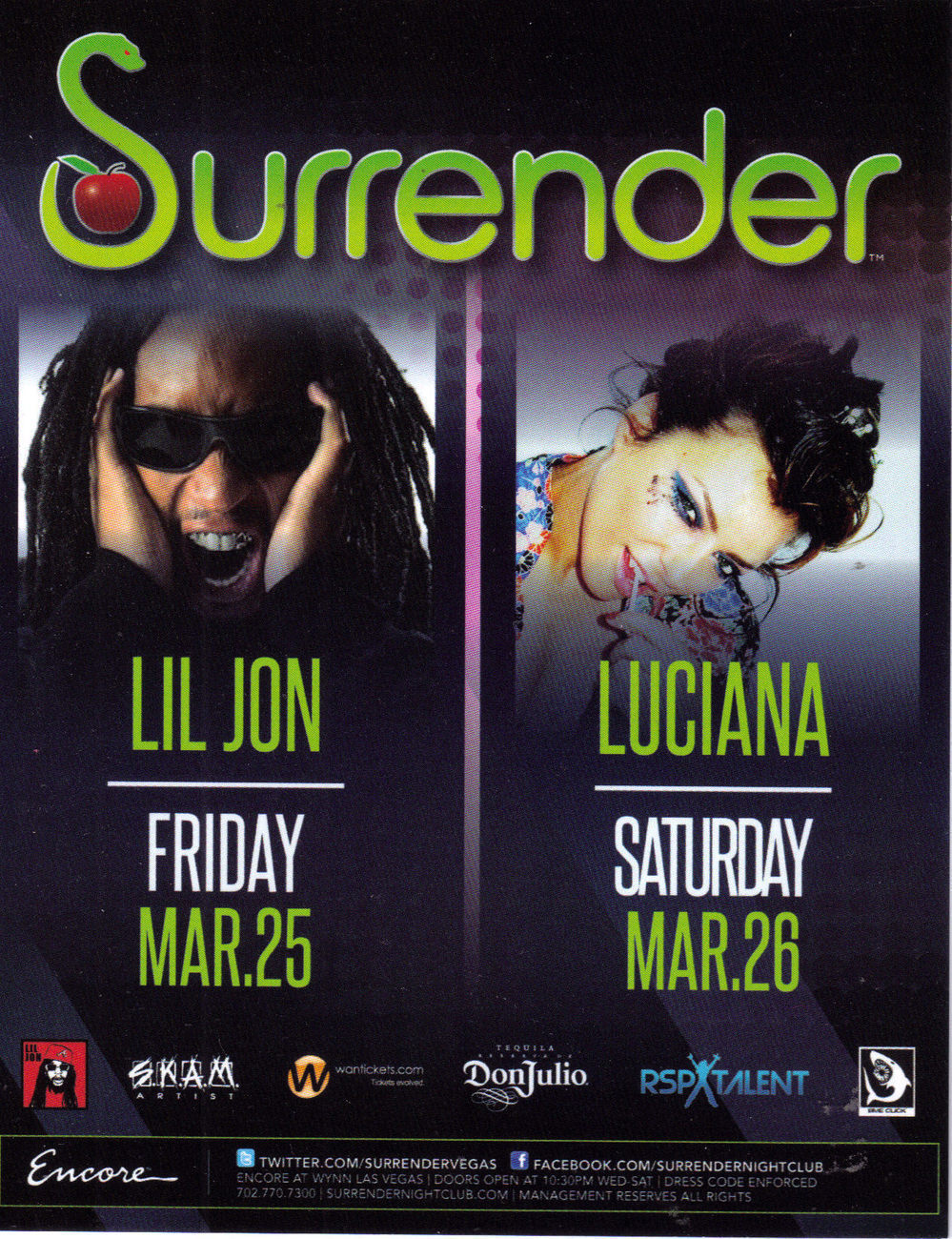 LIL JON , JUCIANA @ SURRENDER ENCORE Las Vegas Promo Card