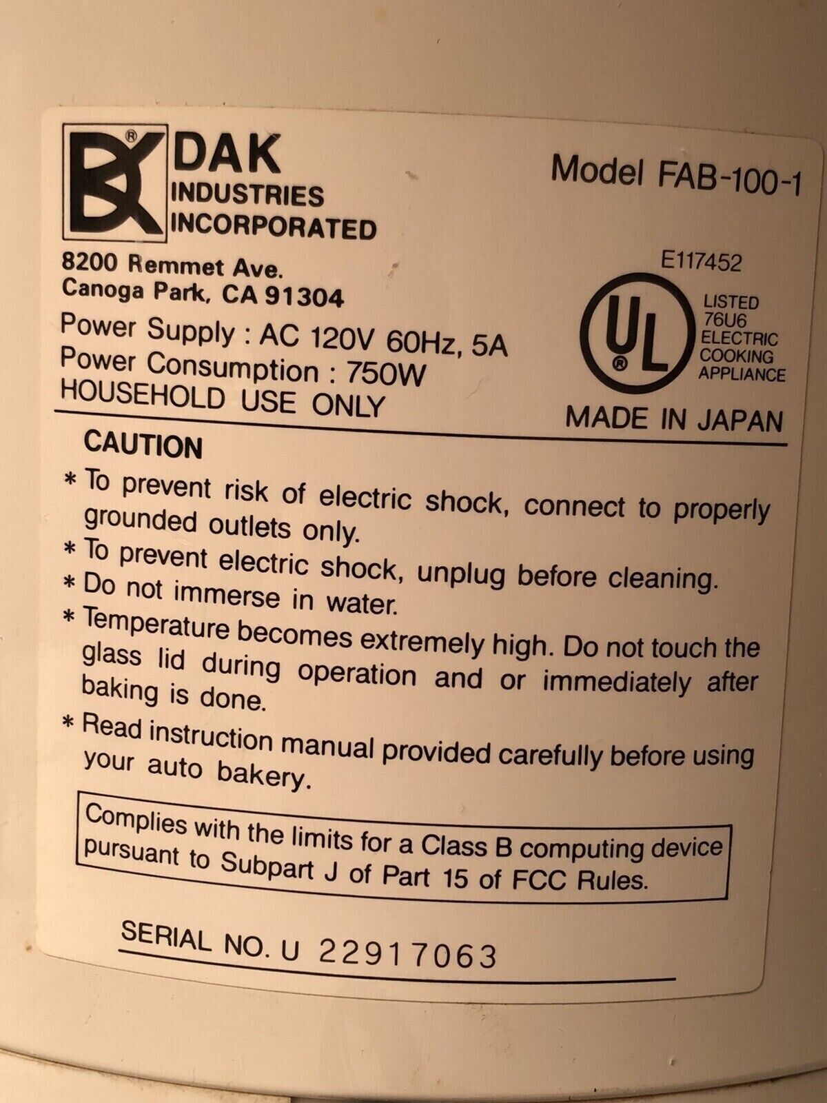 Temperature Sensor Probe for DAK Bread Machine Model FAB-100-1