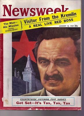 You are bidding on a Newsweek Magazine: Visitor from the Kremlin A Real Live Red Boss and Get Set-It's Tax, Tax, Tax January 12, 1959