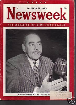 You are Bidding on a Newsweek Magazine Acheson:Where Will He Stand on Russia? January 17, 1949 Complete no missing pages.