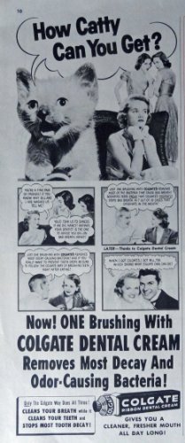 Colgate Ribbon Dental Cream, 50's Print Ad. B&W Illustration (How catty can y...