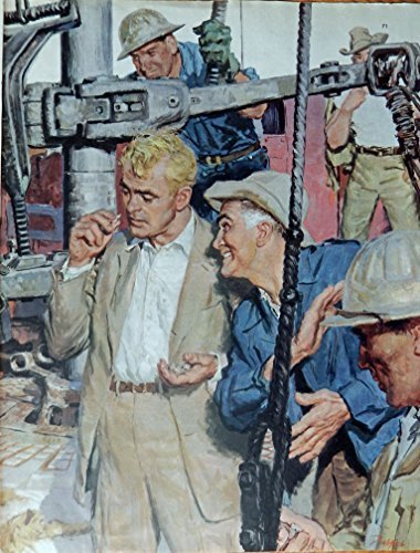 James Dwyer, 50's Full Page Color Illustration, print art (workers on oil rig...