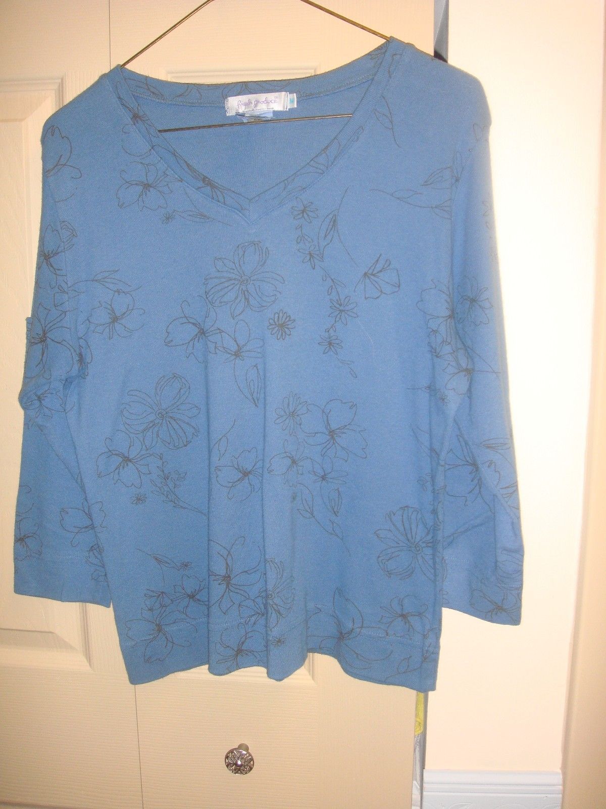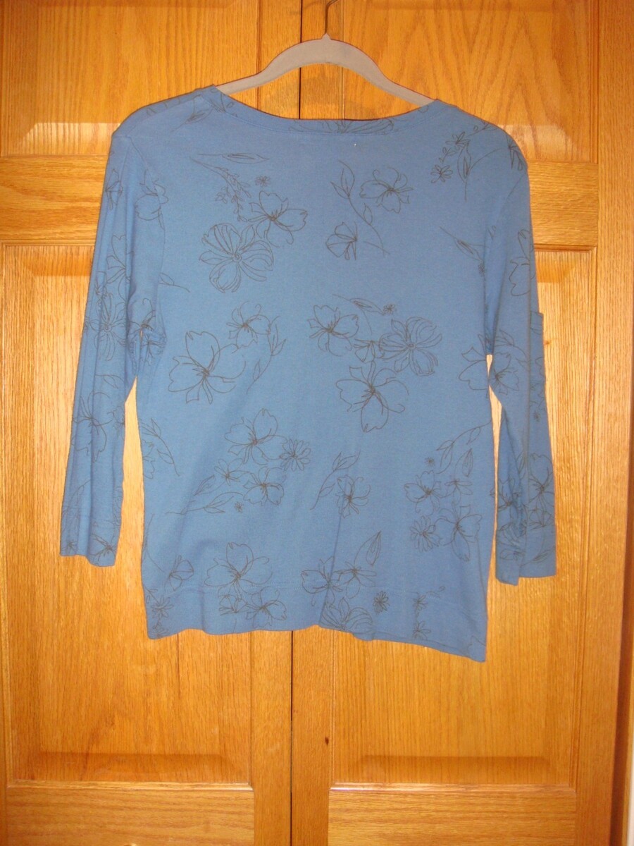 Fresh Produce Top Storm V-Neck Top With Brown Etched Flowers 3/4 Sleeve Top, Size M, Gently Used.