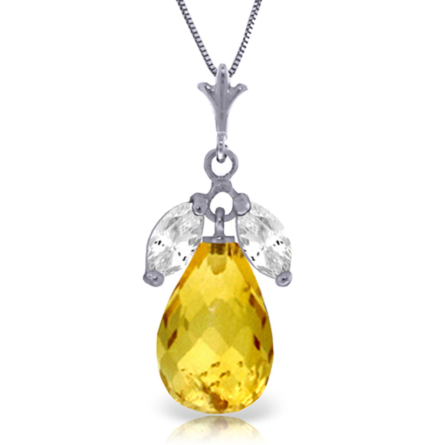 7.2 CTW 14K Solid White gold Depth Mastered Citrine White Topaz Necklace 16-24"