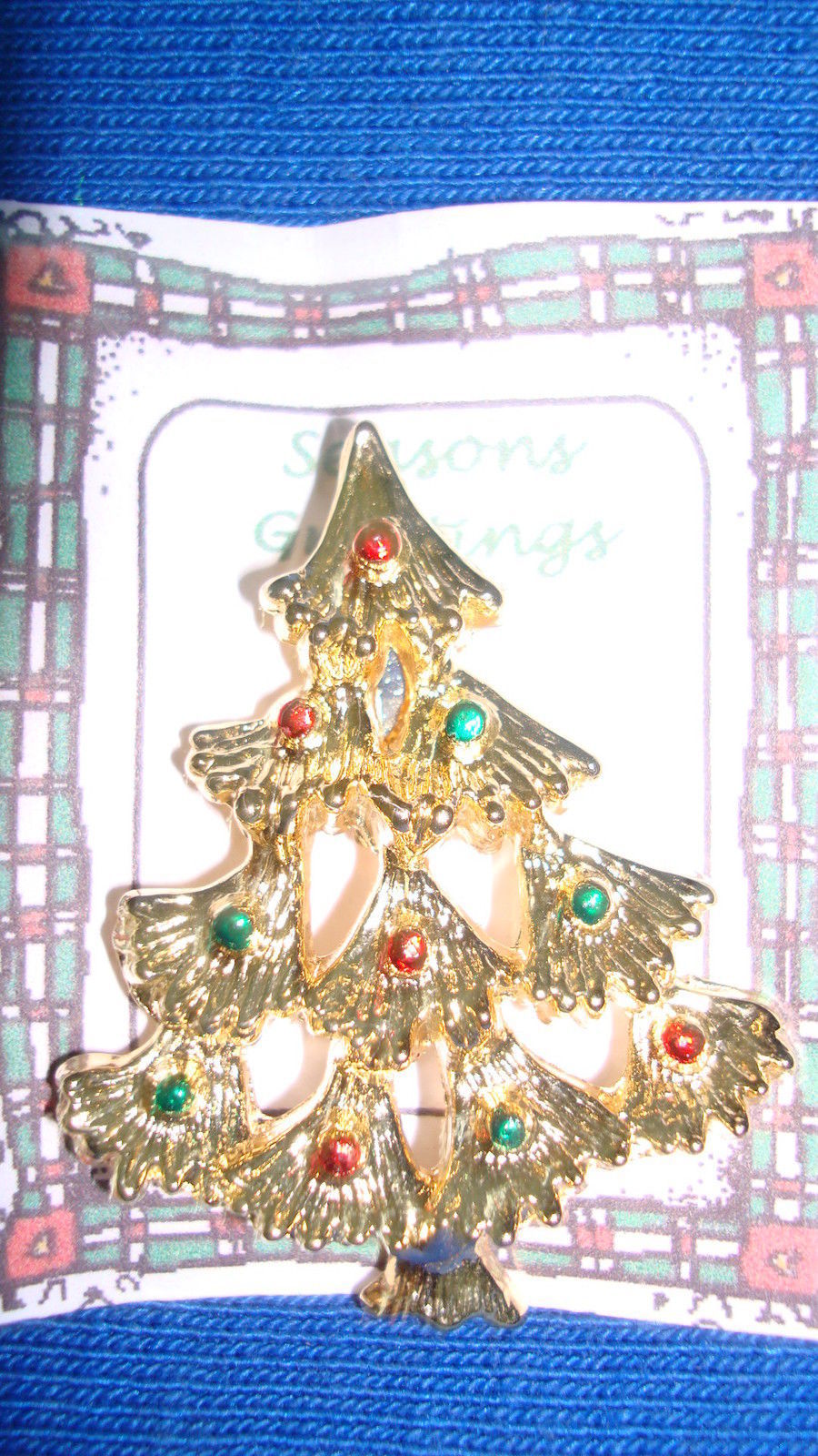 This is a Unique and very pretty Vintage Goldtone Christmas Tree Pin. There are 10 simulated Red Green enamel ornaments. Very unique looking piece of jewelry. No Box.