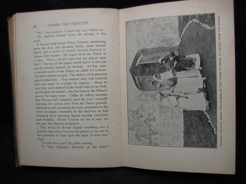 Under The Crescent being the Six Narratives of the Nile founded upon the actual experiences of Her Serene Highness, The Princess Ibrahim Hassan. Produced at Universal City, California by The Universal Film Manufacturing Co. The cast of characters are played by Princess Ibrahim Hassan, Helen Wright, Edward Sloman, Carmen Phillips, William Quinn, H. E. Canfield, William C. Dowlan, Orral Humphrey and Edna Maison (#00002434)